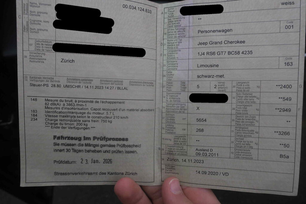 | Fahrzeug im gebrauchtem Zustand mit CH-Zulassung Keine Rückhaltesysteme ausgelöst. Motorkontrolllampe leuchtet |