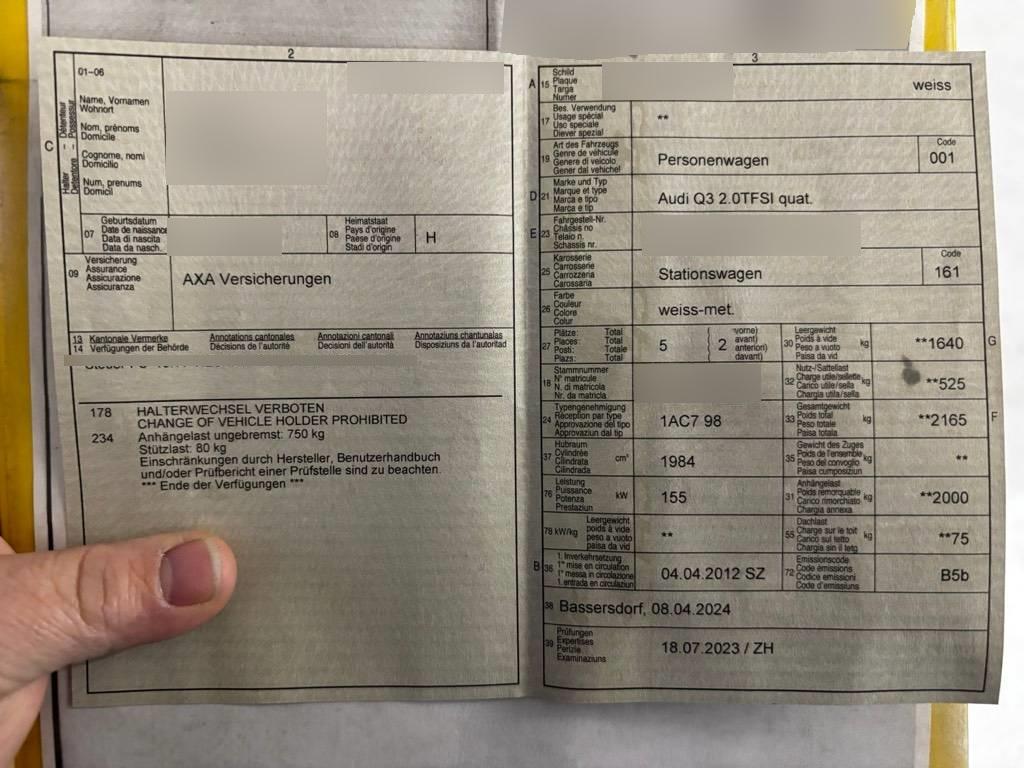 | Fahrzeugausweis | Vorhanden |