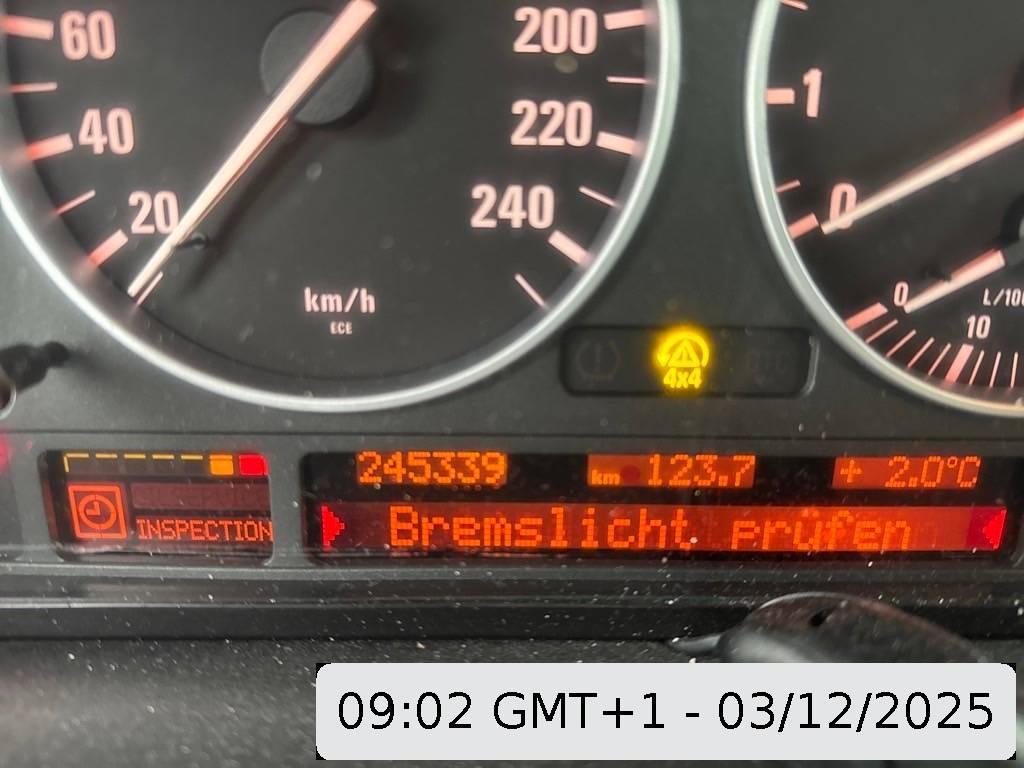 Aufklappbare Heckscheibe, Stoff-Ausstattung, Niveauregulierung mit Luftfederung für die Hinterachse, Drehzahlmesser, Holzapplikationen Pappel dunkel, Automatische Umluftkontrolle, Ausstiegsleuchten in den Türen, Antiblockiersystem (ABS), Lenkrad: Multifunktionslenkrad, Tempomat, Lenkrad und Schalthebelgriff in Leder, Sicherheitstrennnetz oder /-gitter im Gepäckraum, Info-Display, Licht: Nebelschlussleuchte, Bremsassistent (BAS), Aussentemperaturanzeige, Bordcomputer, Window-Kopfairbags, Digital Uhr, Xenon-Lichtanlage, Katalysator geregelt, Diebstahlwarnanlage mit Fernbedienung, Assist: Cornering Brake Control (CBC), Steckdose im Kofferraum, Automatische Stabilitäts-Control (ASC), Dynamische Stabilitätskontrolle (DSC), Hill Descent Control (HDC), Kopfstützen hinten, Geteilte Heckklappe, Scheibenwaschdüsen beheizt, Getriebe: 6-Stufen-Automat Steptronic, Stossstangen und Aussenspiegel in Wagenfarbe, Mittelarmlehne hinten, Lenkung, elektrisch unterstützt, Höhenverstellbare Gurten vorne, Airbag: Seitenairbag für Fahrer und Beifahrer, Sitzbelegungserkennung für Airbags, Rücksitzlehne geteilt abklappbar, Beide Make up-Spiegel beleuchtet, Scheinwerfer-Waschanlage, Anbauteile in Wagenfarbe, Laderaumabdeckung, Nebelscheinwerfer, Check-Control-System, Grün getönte Scheiben, Lackierung: Uni-Lackierung, Bavaria C Business RDS mit Antenne, Ent- störung und 4/6 LS, Drittes Bremslicht, Gurtstraffer vorne, Scheibenwischer vorne mit Intervall, 4 Leichtmetallfelgen im Sternspeichen- design 17J mit Pneu, Aussenspiegel rechts und links beheizbar und elektrisch verstellbar, Abschliessbare Radschrauben, Allradantrieb permanent, Wegfahrsperre elektronisch, Zentralverriegelung mit Fernbedienung, Heckscheiben-Wisch-/Waschanlage, Elektrische Fensterheber vorne + hinten, Aktivkohlefilter (Geruchsfilter), Mittelarmlehne vorne, Licht: Leuchtweitenregulierung automatisch, Elektronische Differentialsperre (ADB-X), Wartungsintervall-Anzeige, Bremsbelag-Verschleissanzeige, Cupholder hinten, Airbag: Airbag Fahrer und Beifahrer, Beleuchtetes und abschliessbares Handschuhfach, Reifendruckverlust-Warnsystem, Klimatisierungsautomatik, Pollenfilter (Staubfilter)
