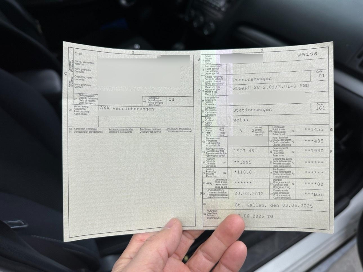 | Fahrzeugausweis | Vorhanden |