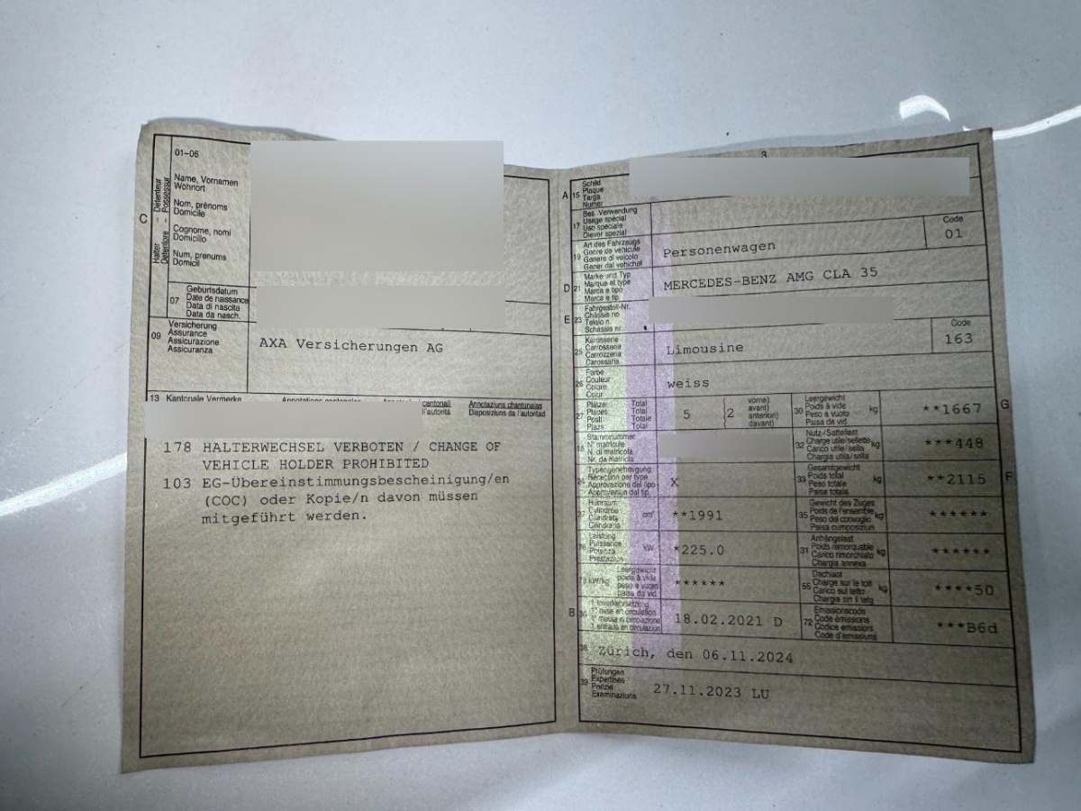 | Fahrzeugausweis | Vorhanden |