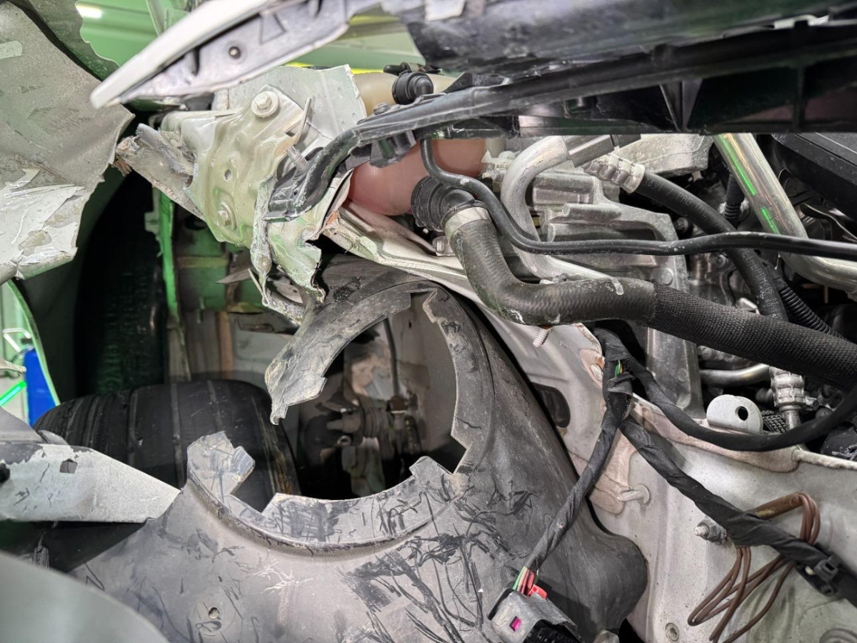 Front, Front rechts, Kotflügel rechts, Lenkung, Längsträger vorne rechts, Rad vorne links, Rad vorne rechts, Radaufhängung vorne rechts, Radhaus vorne rechts, Scheinwerfer rechts, Schweller rechts, Stosstange vorne, Vorderachse