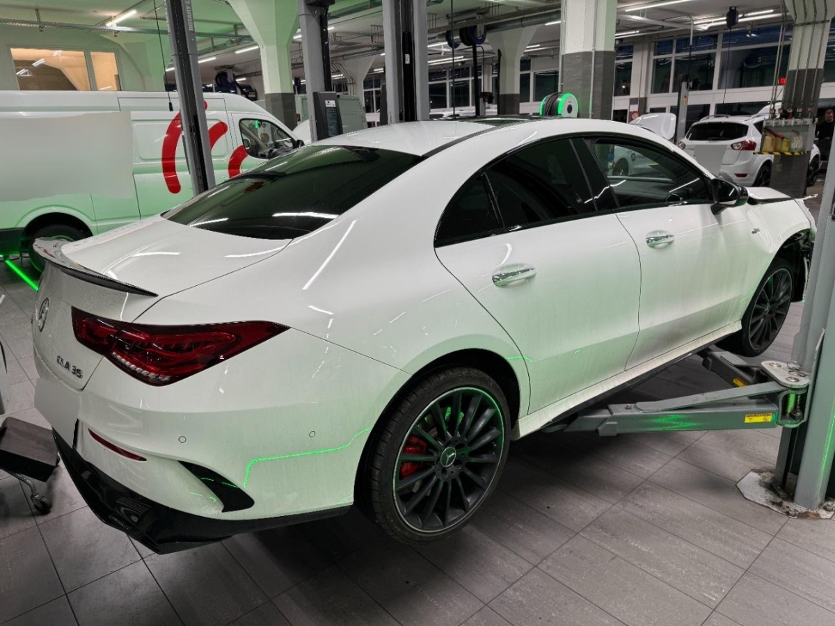 Remote Services, Lackierung: Uni-Lackierung Polarweiss, Polster: Ledernachbildung ARTICO/Mikrofaser DINAMICA, Airbag: Knie-Airbag für Fahrer, Airbag: Airbag Beifahrer deaktivierbar, Dekor: Zierelemente Aluminium mit Längsschliff hell, Airbag: Window-Kopfairbags für Fahrer, Beifahrer und Fondraumpassagiere, Räder: AMG Leichtmetallräder im 5-Doppelspeichen Design 18J mit 235/40 R 18 auf 8 J × 18, AMG Veloursfussmatten, Treibstofftank 51L, Licht: LED High Performance-Scheinwerfer, Lenkrad: AMG Performance Lenkrad in Leder Nappa, AMG Driver’s Package, AMG Kühlergrill, Dachhimmel schwarz, Polster: Polster Ledernachbildung ARTICO/Stoff Fléron, AMG Front- und Heckschürze, Getriebe: Sequentielles 7-Gang-Getriebe mit Automatikfunktion, Media: Digitaler Radioempfang (DAB/DAB+), Klima: Klimatisierungsautomatik THERMOTRONIC, Garantie: MERCEDES-SWISS-INTEGRAL Garantie: 3 Jahre oder 100’000 km, Gratis-Service: 10 Jahre oder 100’000 km (ab 1. Inv.), Airbag: Airbag Fahrer und Beifahrer