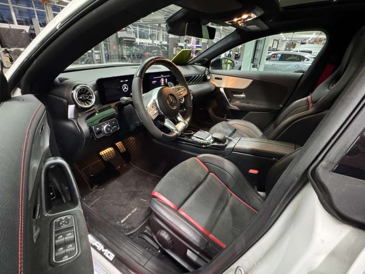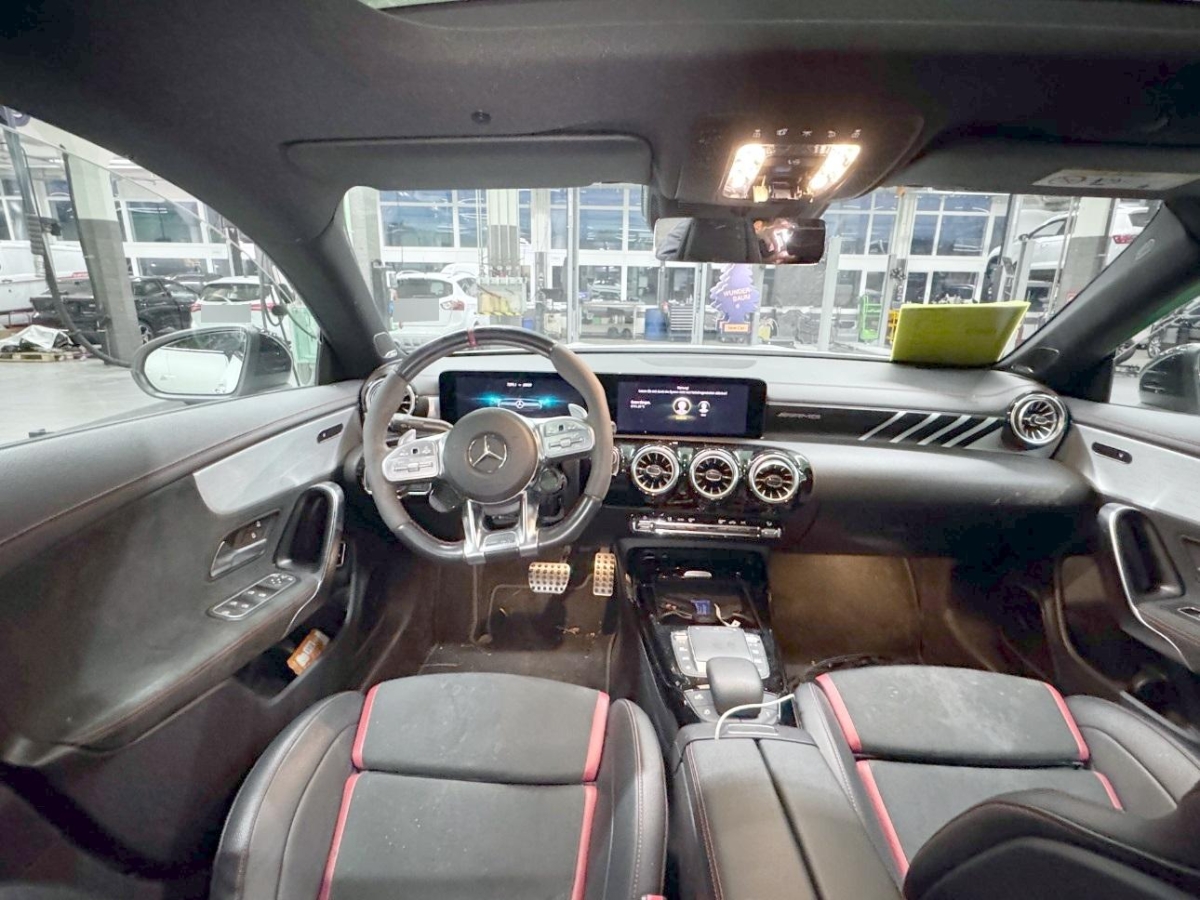 Media: MBUX Augmented Reality für Navigation, Warnweste für Fahrer, Scheibenwaschanlage beheizbar, Licht: Umfeldbeleuchtung mit Projektion des Markenlogos, Media: Kabelloses Ladesystem für mobile Endgeräte, Sitze: Sitzlehnen im Fond klappbar, Licht: Adaptiver Fernlicht-Assistent Plus, Volldigitales Instrumenten-Display, Assist: Totwinkel-Assistent, Panorama-Schiebedach, Sitze: Sitzheizung für Fahrer und Beifahrer, Fahrwerk: Luftgefedertes Fahrwerk AMG RIDE CONTROL, Bremssättel rot lackiert, Dekor: Zierelemente Aluminium AMG Design schwarz / silber, Licht: MULTIBEAM LED Scheinwerfer, Wärmedämmendes Glas, ab B-Säule dunkel getönt, Licht: Ambientebeleuchtung Multi-Colour, Paket: Spiegel-Paket – Aussenspiegel elektrisch an- und ausklappbar, – Umfeldbeleuchtung, Assist: Mercedes-Benz Notrufsystem, Sitze: AMG Performance Sitze, Räder: AMG Leichtmetallräder im Vielspeichen-Design 19 mit 245/35 R 19 auf 8,5 J × 19, KEYLESS GO, Paket: AMG Sport-Paket Black, Media: Smartphone-Intergration, Lenkrad: AMG Lenkradtasten