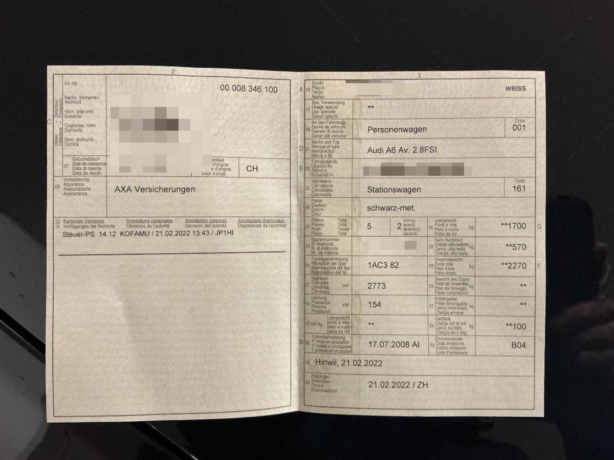 | Fahrzeugausweis | Vorhanden |
