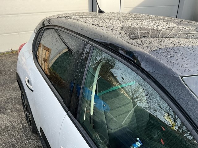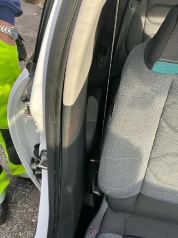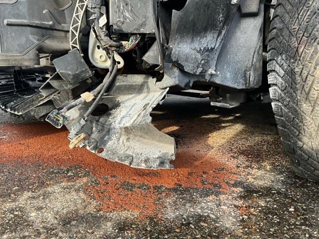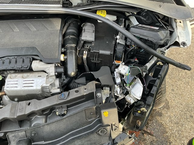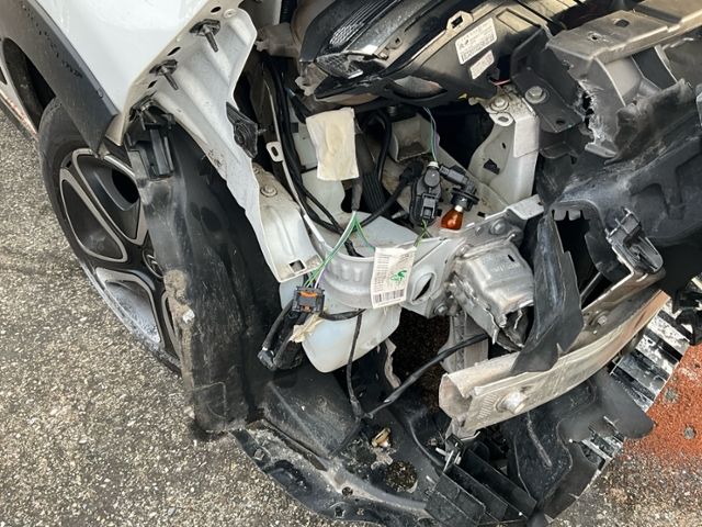 Front Längsträger vorne rechts und links gestaucht. Fahrzeugvorbau nach rechts verschoben. Motor Achse Innenraum Dach |