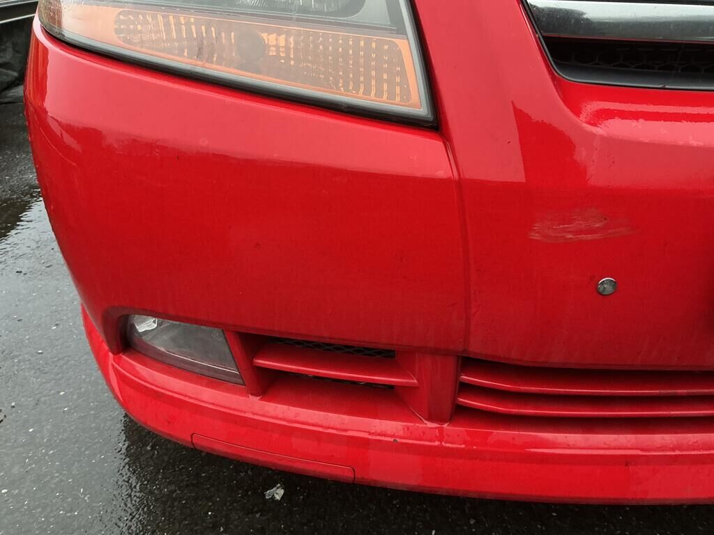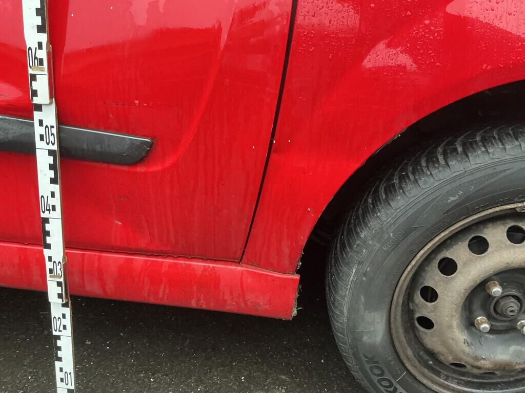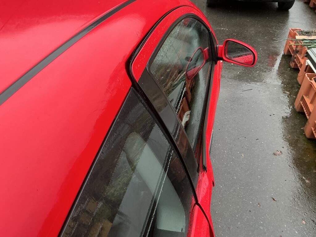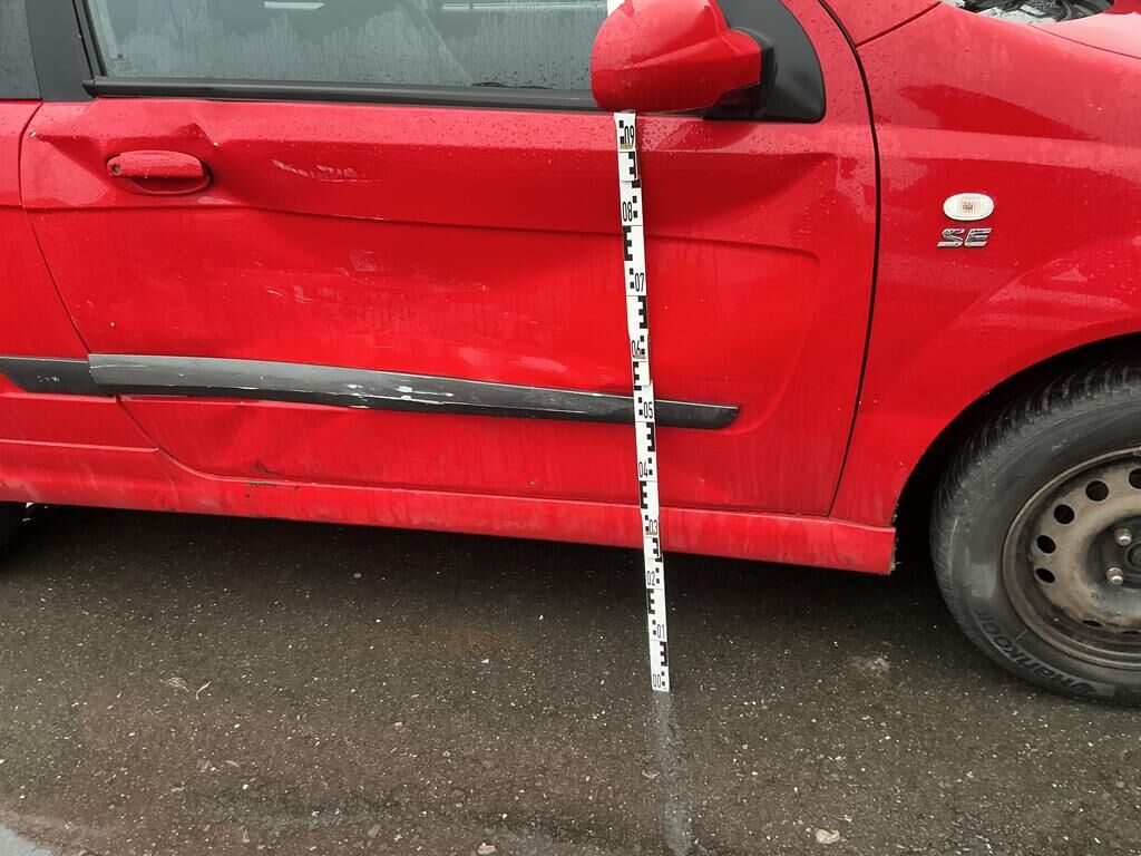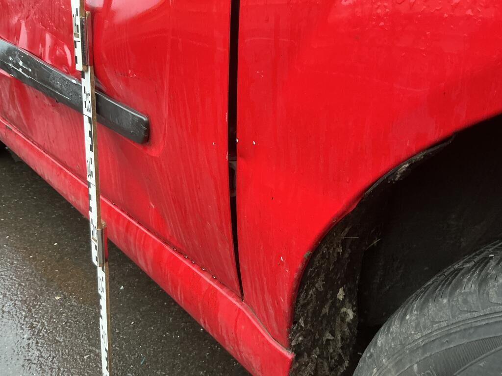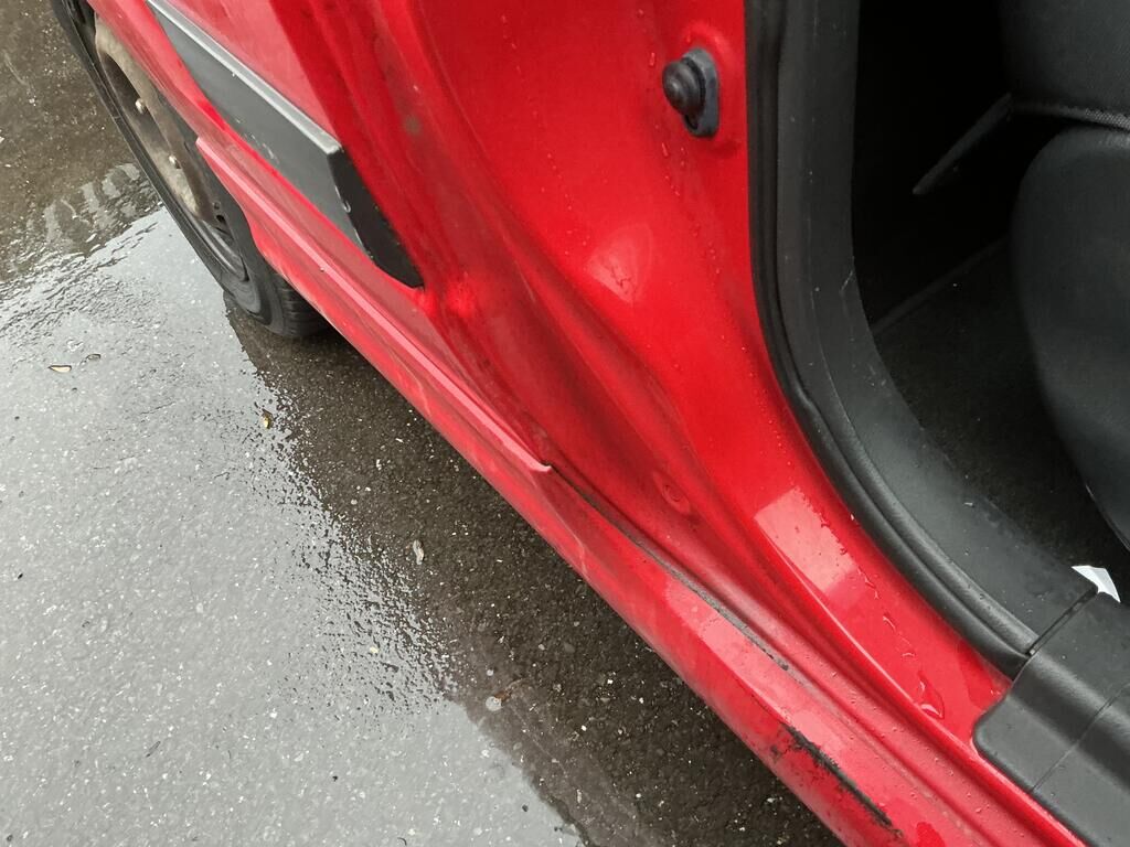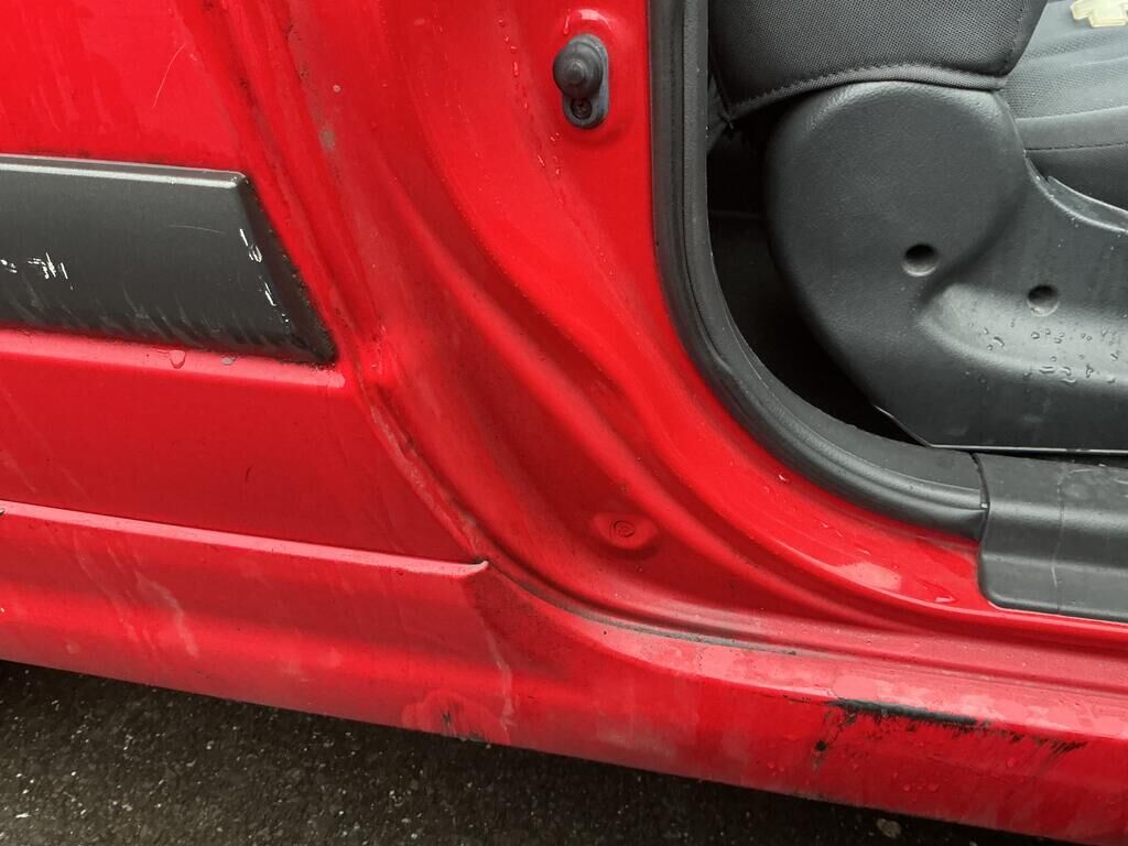 Tamponnement du flanc droit: porte, ailes, moulures, entrée de porte et bas de caisse endommagés.