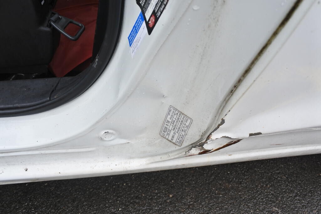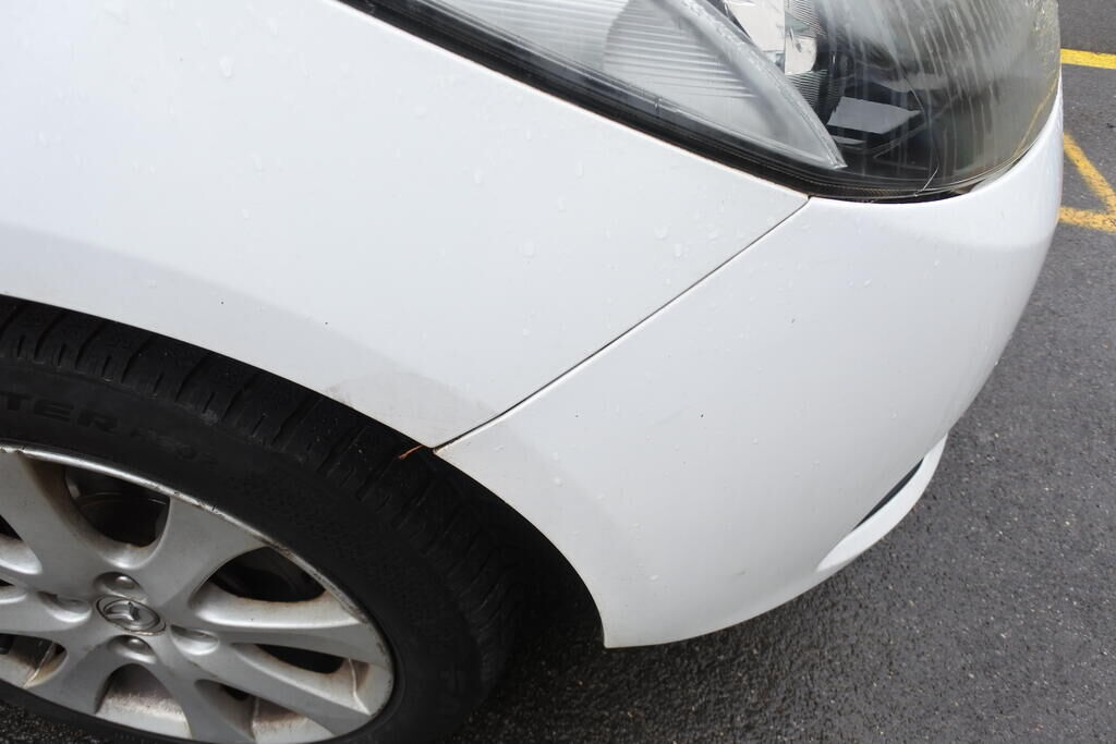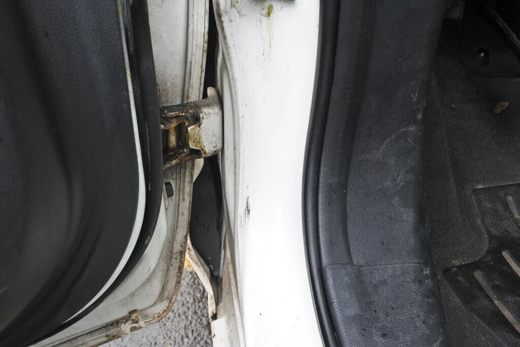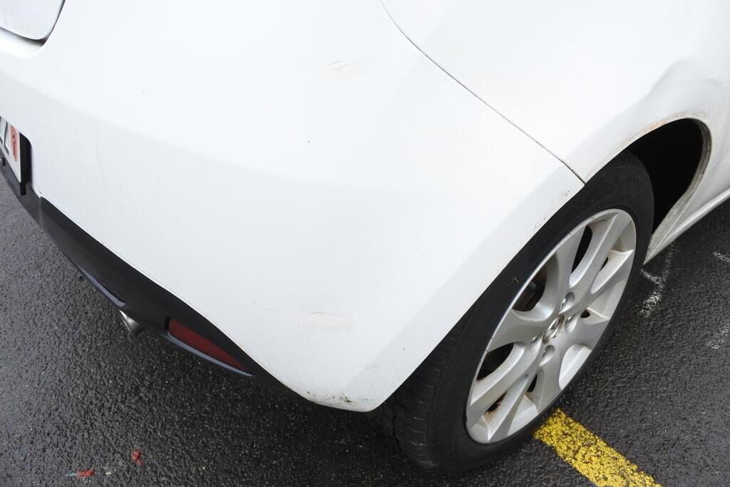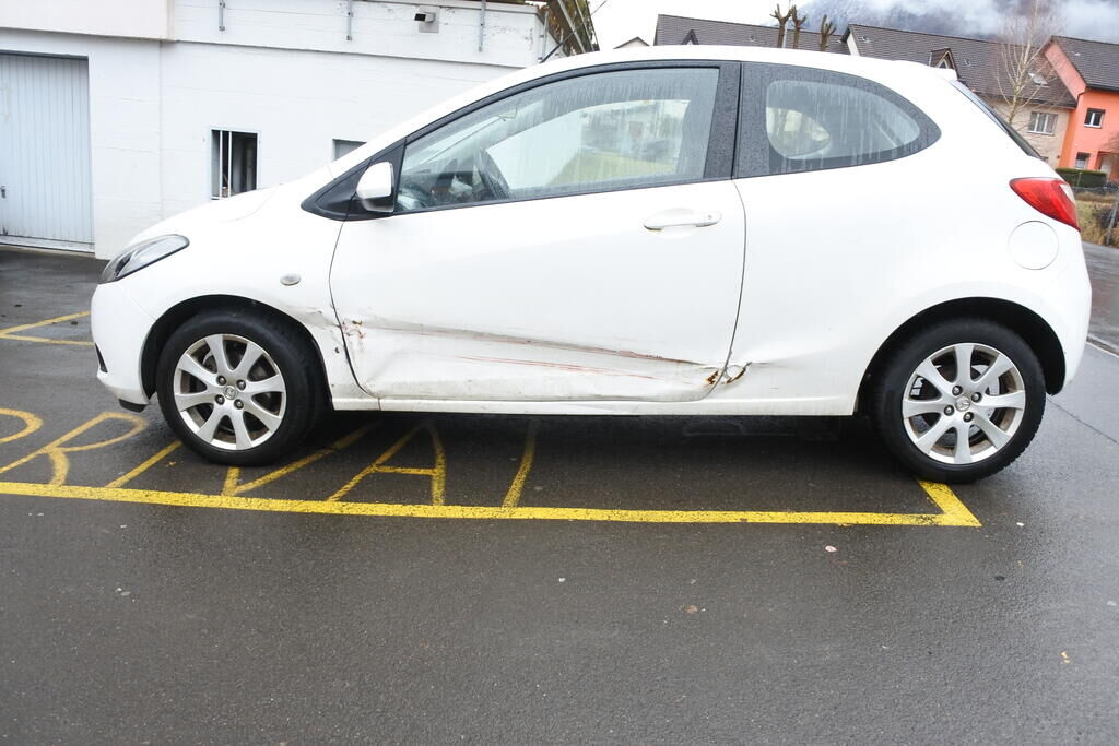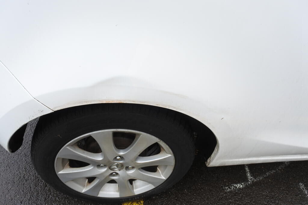 Der Kotflügel mit Auskleidung, die Fahertür sowie die Seitenwand sind beschädigt.
