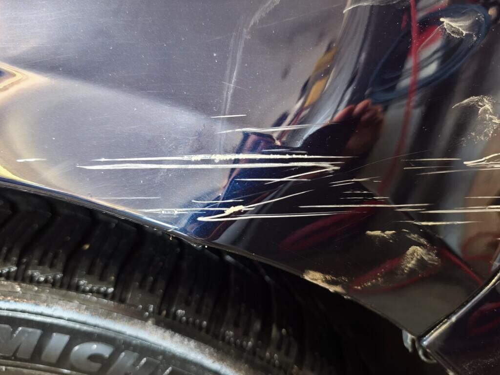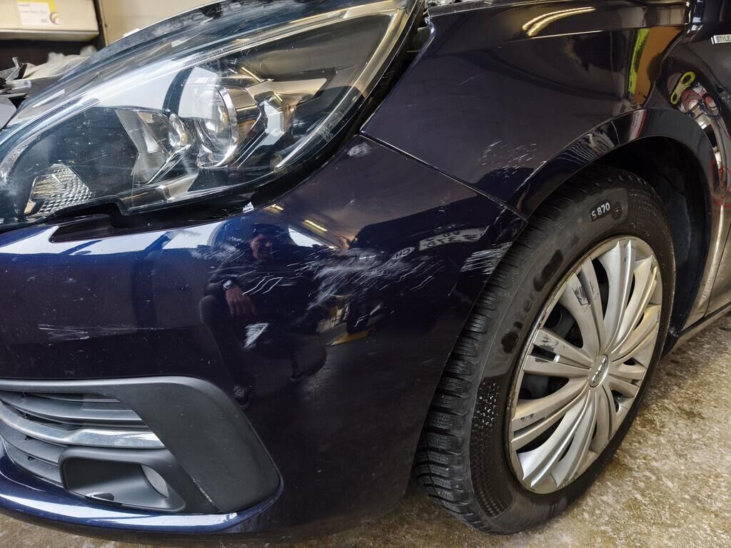 Dommage antérieur sur le pare-chocs avant, l’aile avant gauche et le phare avant gauche.