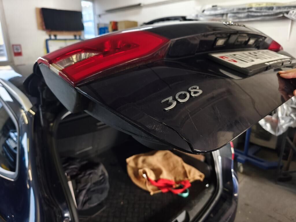 Hayon, pare-chocs arrière, jupe arrière, fau arrière gauche, aile arrière gauche.