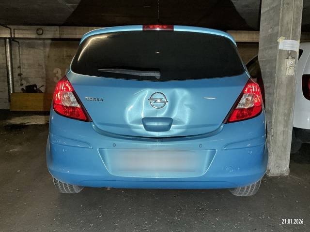 Schadensbeschreibung Heckklappe eingedrückt, Stossfänger gerissen – AUFZÄHLUNG NICHT ABSCHLIESSEND / Vorschaden: Motorhaube div. Dellen, Stossfänger vorne rechts zerkratzt, Gebrauchsspuren / RADIO WIRD EVTL. DURCH DAS ORIGINAL ERSETZT