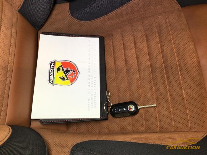 Sportsitze in Leder/Alcantara, KIT ABARTH SS NERO: Türkleber Abarth + Aussenspiegel schwarz, Antenne ‘Record’ integriert in hintere Seitenscheibe, Autoradio, Navigationsystem mit Touchscreen, Bedienelement am Lenkrad, Bluetooth, Multimediasystem, Uconnect (Freisprecheinrichtung, USB,AUX), DAB+, HiFi-Sound System mit Verstärker und Subwoofer, Paket: Raucherpaket, Einparkhilfe hinten, Elektrisches Glasschiebedach