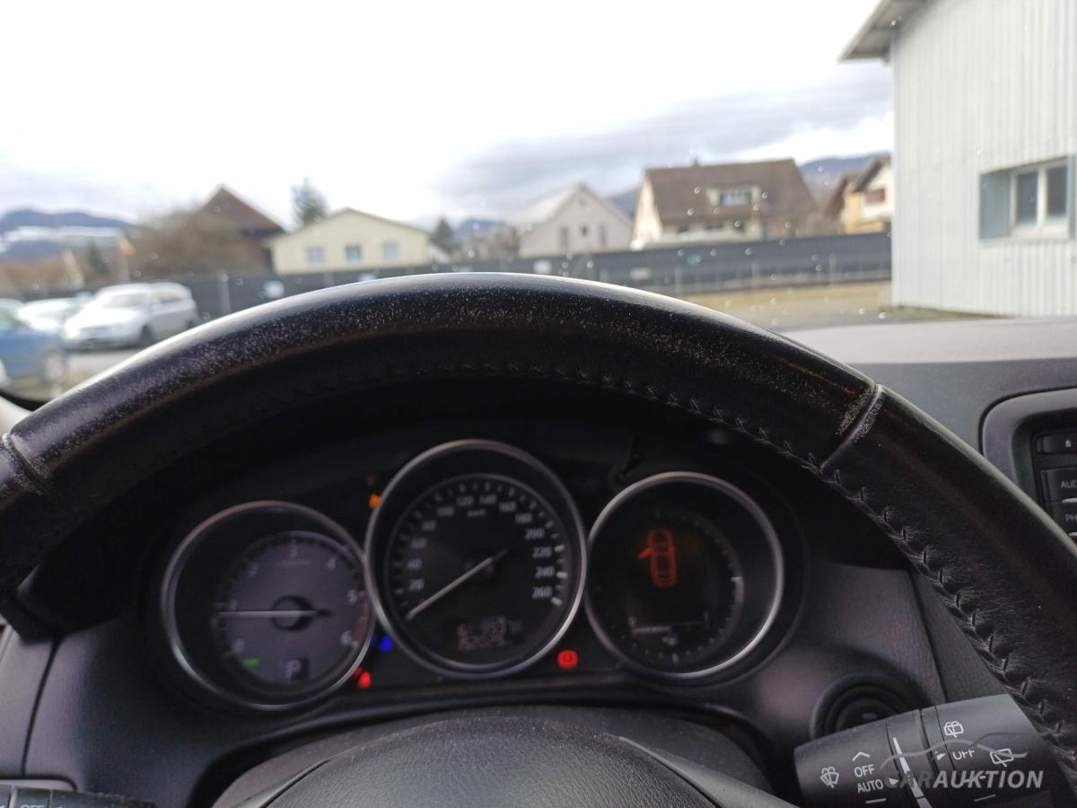9 LautsprecherABS und TCSAirbag: Airbag Fahrer und BeifahrerAirbag: Seitenairbag für Fahrer und BeifahrerAirbag: Window-KopfairbagsAllradantrieb permanentAssist: Berganfahrhilfe (Hill Holder)Assist: Bremsassistent (BAS)Assist: Dynamische Stabilitätskontrolle (DSC)Assist: Park Distance Control vorne und hintenAssist: RückfahrkameraAssist: SpurwechselassistentAussenspiegel rechts und links beheizt,Beide Make up-Spiegel beleuchtetBi-Xenon-Lichtanlage mit automatischerBordcomputerElektrische Fensterheber vorne + hintenFahrersitz elektrisch verstellbar mitFarbmonitor für NavigationsystemGetriebe: 6-Stufen-Automat sequentiellGetönte ScheibenGetönte Scheiben PrivacyHeckscheibenheizungInnenspiegel automatisch abblendbarKeyless EntryKlima: 2-Zonen-KlimaautomatikKlima: Pollenfilter (Staubfilter)Lackierung: Uni-LackierungLaderaumabdeckungLederausstattung schwarzLenkrad und Schalthebelgriff in LederLenkrad: MultifunktionslenkradLicht: Drittes BremslichtLicht: Licht- und RegensensorLicht: NebelschlussleuchteLicht: TagfahrlichtMake up-Spiegel linksMake up-Spiegel rechtsMazda Garantie: Garantie 3 Jahre oder 100’000 kmMedia: Bluetooth-SchnittstelleMedia: Premium – Bose SoundsystemMedia: Radiovorbereitung, Antenne und EntstörungNavigationssystem Tom TomPartikelfilter und OxydationskatalysatorRadio/CD-Player mit MP3Scheibenwischer vorne mit IntervallSitze: ISOFIX KindersitzvorrichtungSitze: Rücksitze geteilt abklappbarSitze: Vordersitze elektrisch verstellbarSitze: Vordersitze heizbarSpurhalteassistent Lane AssistStart-/Stop-KnopfStopp-/Start-SystemTempomatWarnblinkautomatik bei VollbremsungWegfahrsperre elektronischZentralverriegelung mit Fernbedienung
