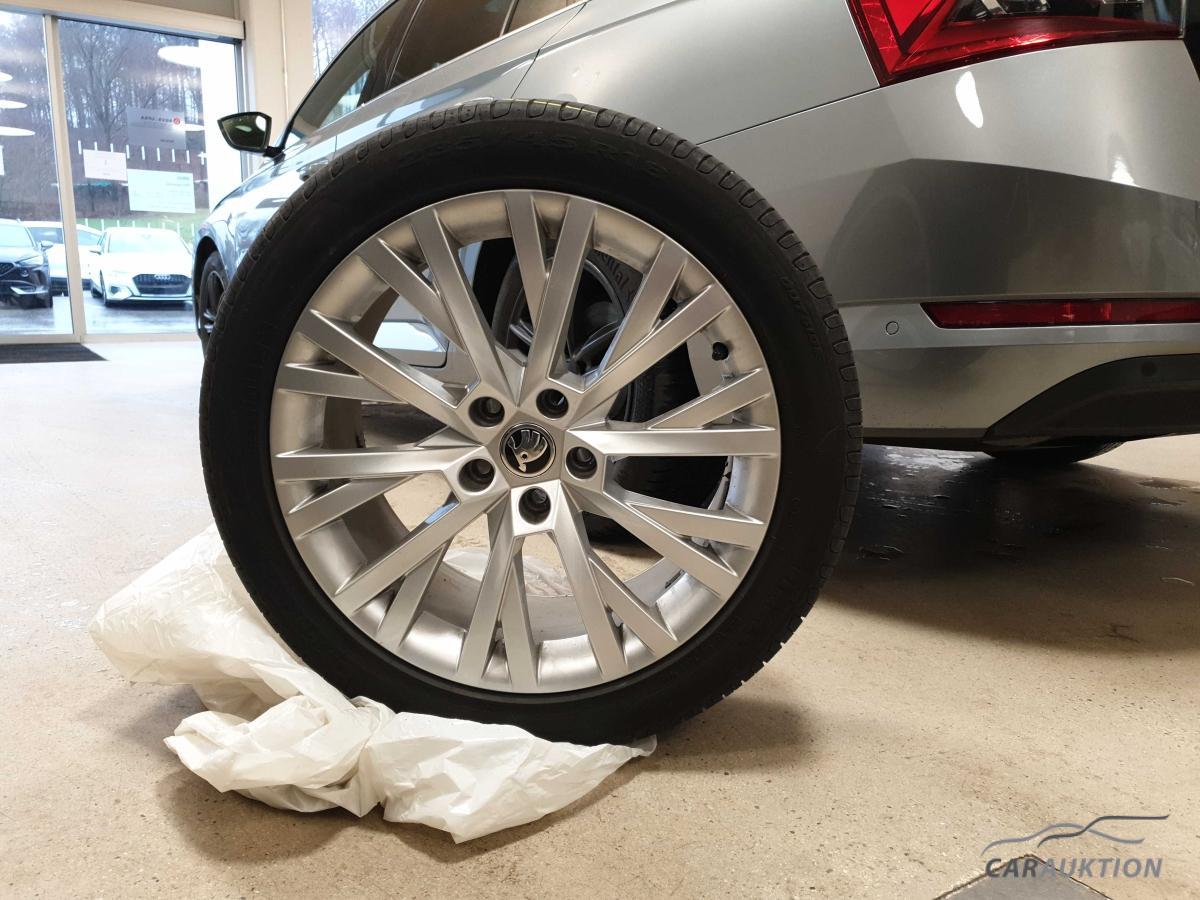 Pack Chrom, Keyless Start, Elektrische Fensterheber vorne + hinten, Aussenspiegel el.verstell-heiz-anklappbar/abblendbar/Memory, Regensensor, Heckscheibenwischer, Heizbare Scheibenwaschdüsen, Heckklappe elektrisch, Scheinwerfer Reinigungsanlage, Lichtassistentsystem (Coming- und Leaving Home Funktion), Aussenspiegel in Wagenfarbe, Dachreling eloxiert, Einstiegsleisten, Reifen-Pannenset, Dieselpartikelfilter, Airbag Fahrer und Beifahrerseite, Knieairbag Fahrer, Kopf und Seitenairbag vorne, Müdigkeitserkennung, Isofix Kindersitzverankerung für Rückbank, Adaptive Geschwindigkeitsregelung ACC 210 km/h, Park-Distanz-Sensor vorne + hinten, Reifendruck-Kontrollsystem RDK, Matrix LED-Scheinwerfer, LED-Nebelscheinwerfer mit Corner Funktion, LED Rückleuchten, HSA Berganfahrassistent, Elektronische Differentialsperre XDS, ESP/ ASR/ MSR/ ABS mit EBV, Zwei Zonen-Klimaanlage Climatronic, Multifunktionslenkrad für Radio/ Telefon/ DSG, Sitzbezüge in Leder/ Alcantara, Sitzheizung vorne, Elektrisch verstellbarer Fahrersitz mit Memory, Taschenlampe, Mittelarmlehne hinten mit Durchladesystem, Textilfussmatten, Gepäckraumrollo, Travel Assistant, Multifunktionsanzeige Maxi-DOT, Digitaler Radioempfang DAB+, Radio/ SD-Slot/ DAB+/ Bluetooth Bolero, 2 USB-Anschlüsse, Komplette Telefonvorbereitung, SmartLink, Keine Gewähr auf die Angaben der Serienausstattungen