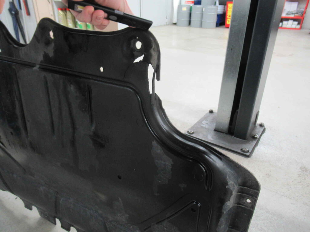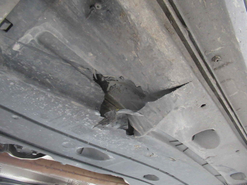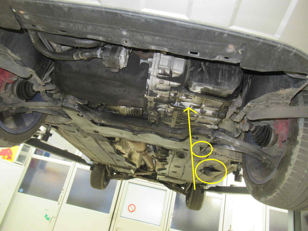 Unterbodenabdeckungen beschädigt und Getriebe defekt.