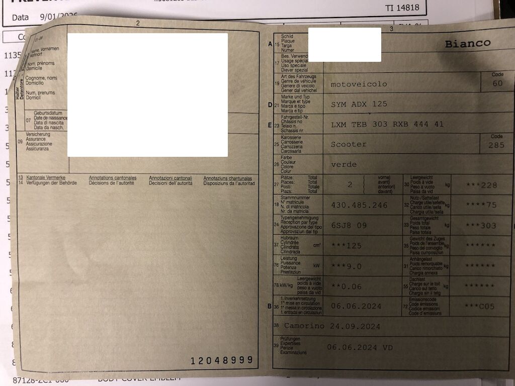 | Tipo veicolo / Costruzione / Porte | Motoveicolo / Scooter / 0 |