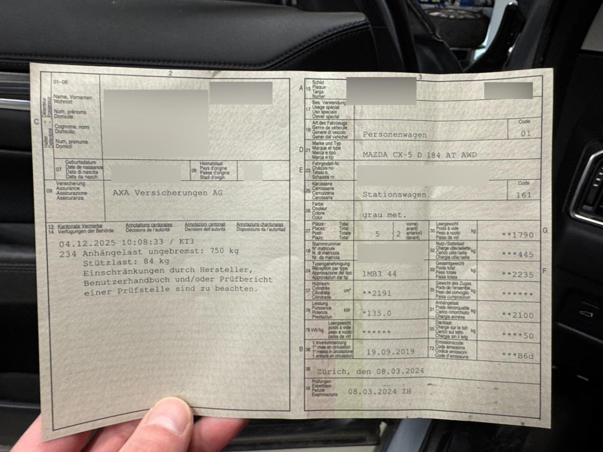 Fahrzeugausweis Vorhanden