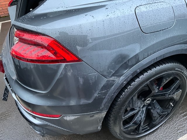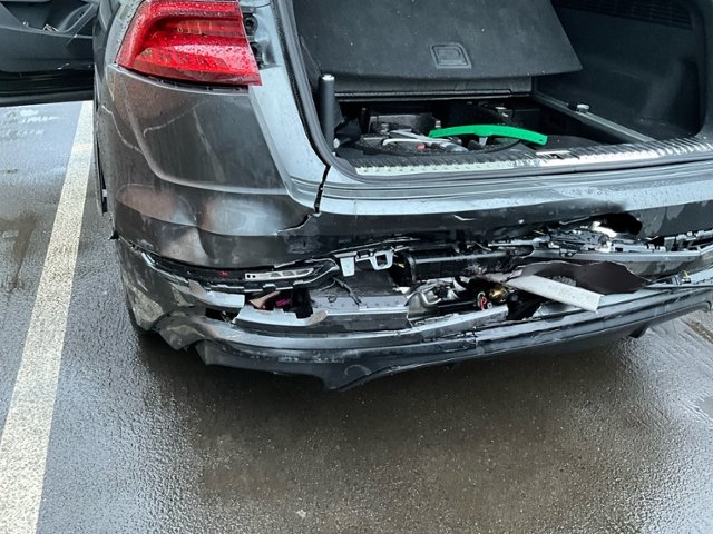 Heck Heck links eingedrückt. Seitenwand hinten links eingedrückt/ausgestaucht. Heckblech eingedrückt. Kofferboden eingedrückt. Längsträger hinten links gestaucht / abgeknickt. Abgasanlage deformiert. Motor Achse Innenraum Unterboden Sonstige Schäden |