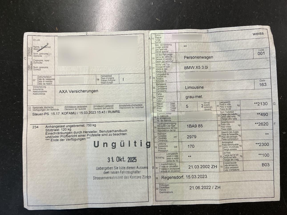 | Fahrzeugausweis | Vorhanden |
