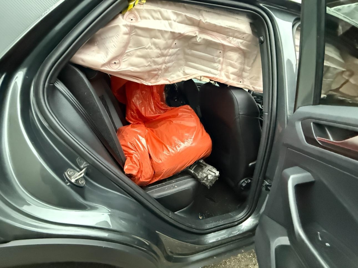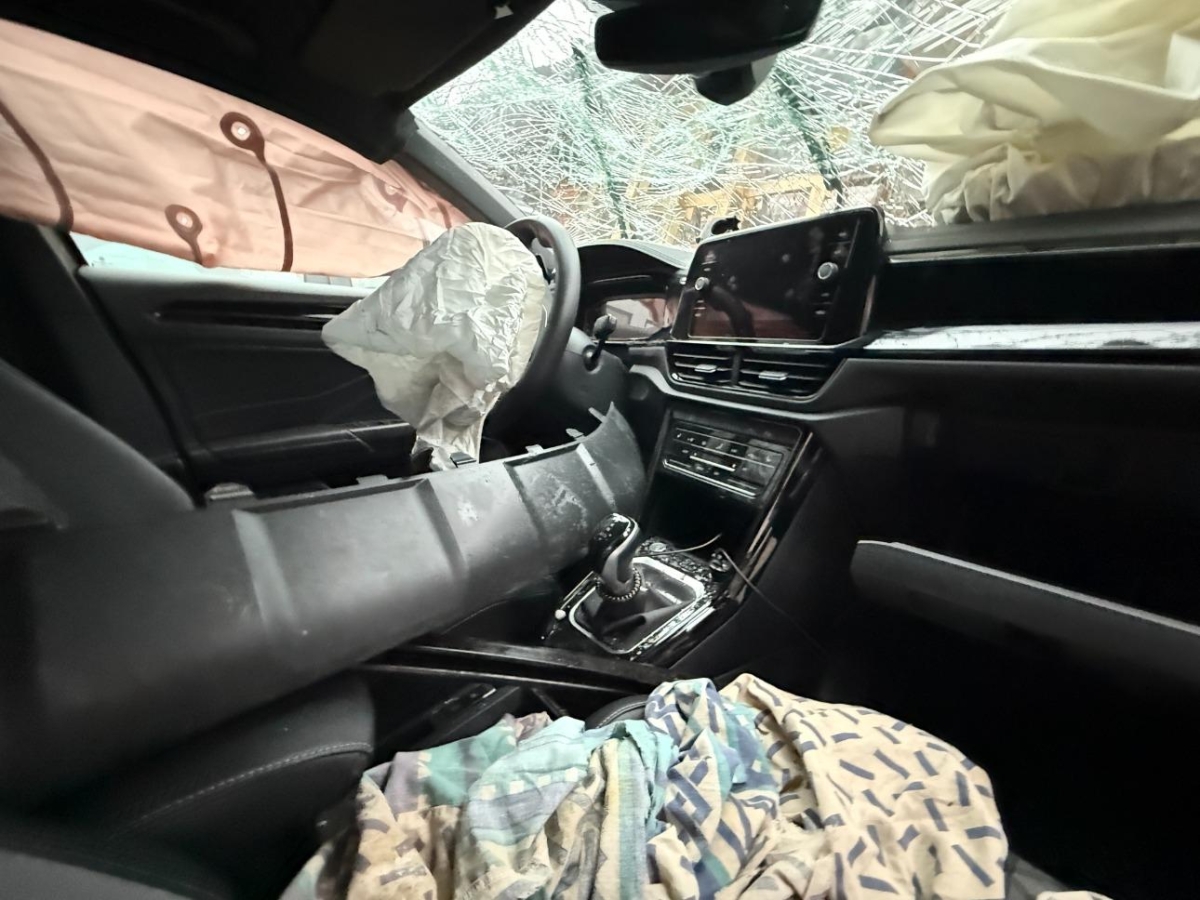 Airbag ausgelöst, Armaturenbrett, Aussenspiegel links, Aussenspiegel rechts, Dach, Federbein vorne links, Federbein vorne rechts, Front, Front links, Front rechts, Frontscheibe, Getriebe, Interieur, Kotflügel links, Kotflügel rechts, Längsträger vorne links, Längsträger vorne rechts, Motor, Motorhaube, Motorträger, Querträger, Rad vorne links, Rad vorne rechts, Radhaus vorne rechts, Scheinwerfer links, Scheinwerfer rechts, Seitenwand links, Stosstange vorne, Türe hinten links, Türe hinten rechts, Türe vorne links, Vorderachse, Ölwanne
