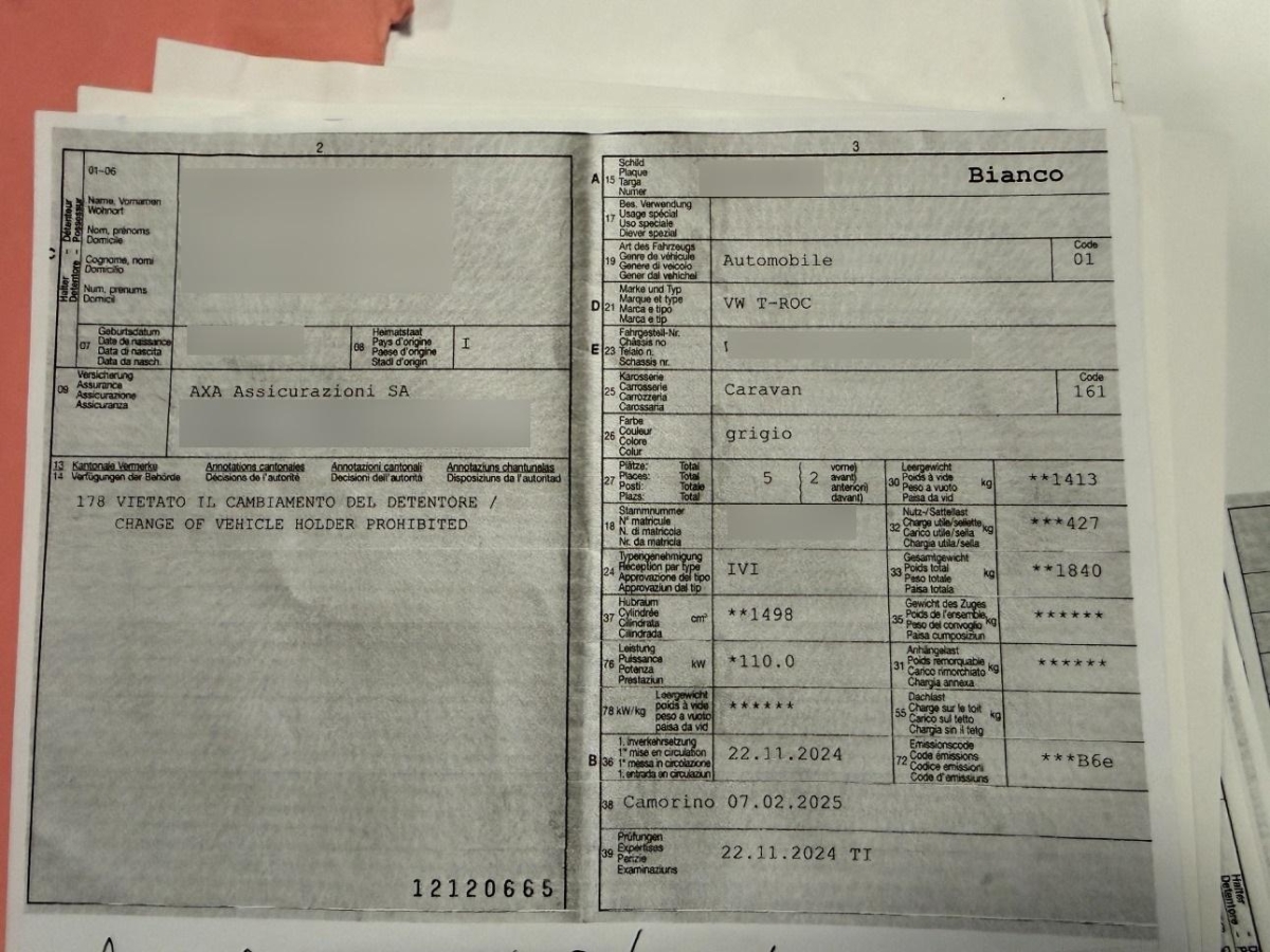 Fahrzeugausweis Vorhanden