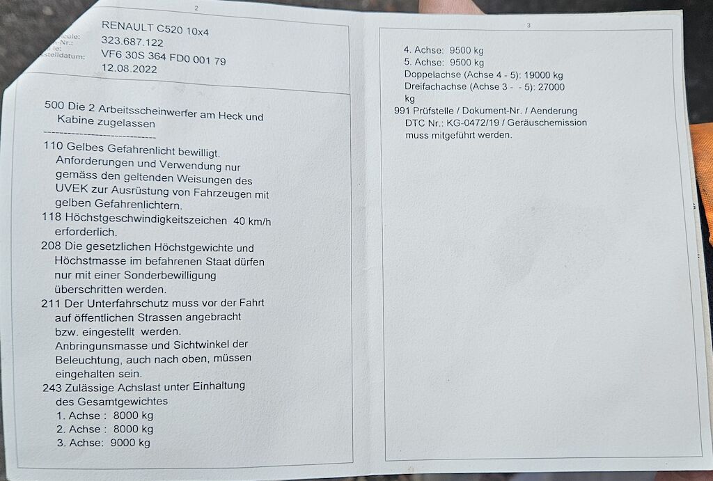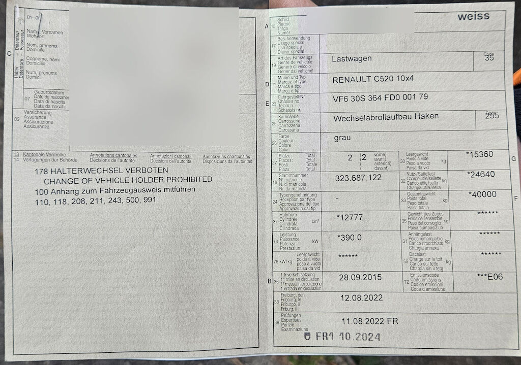 Vorne rechts: Stossstangenecke, Kabinenecke, Einstieg, alle Spiegel und Halter, Stossstangeträger, Scheinwerfer, Nebellampe, Blinkleuchte VR, Motorhaube / Kühlergrill, Unterfahrschutz, Frontblech, Fahrertüre VR, …..