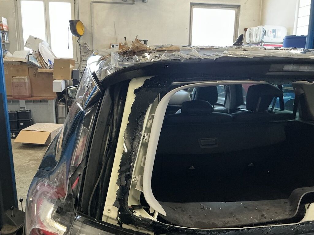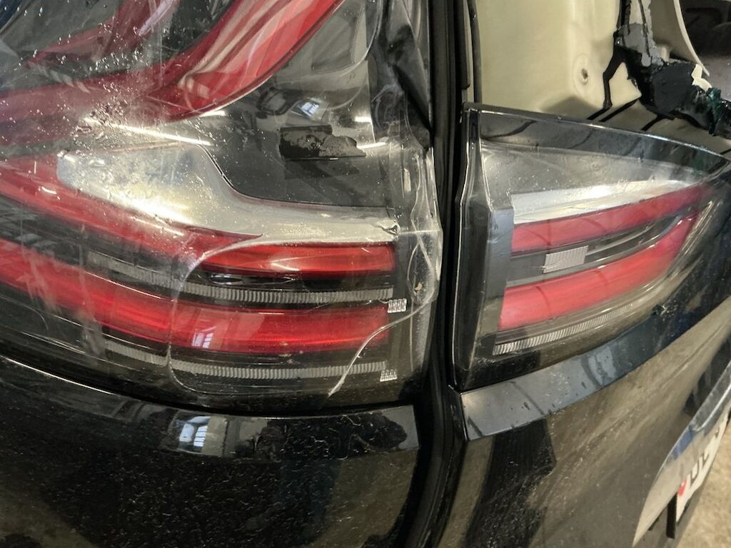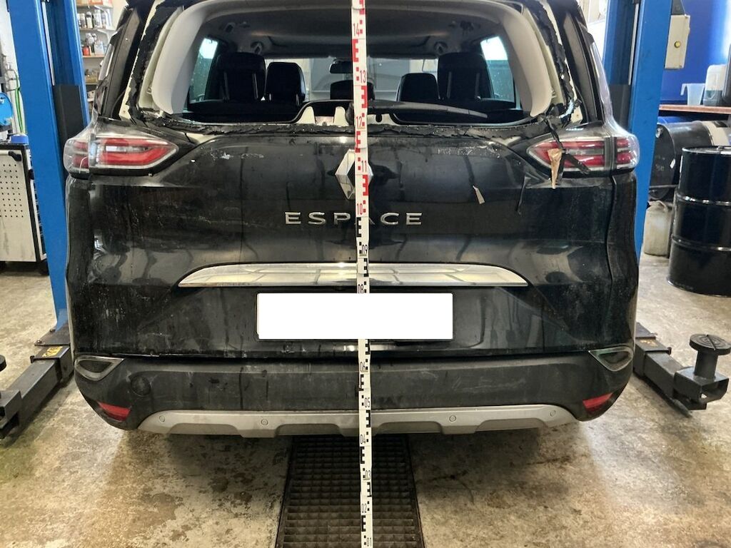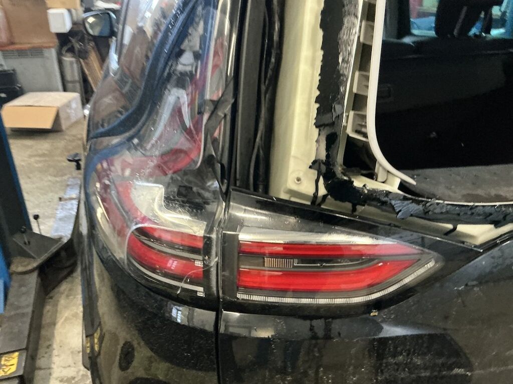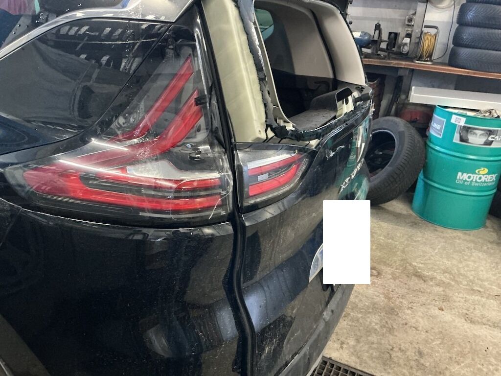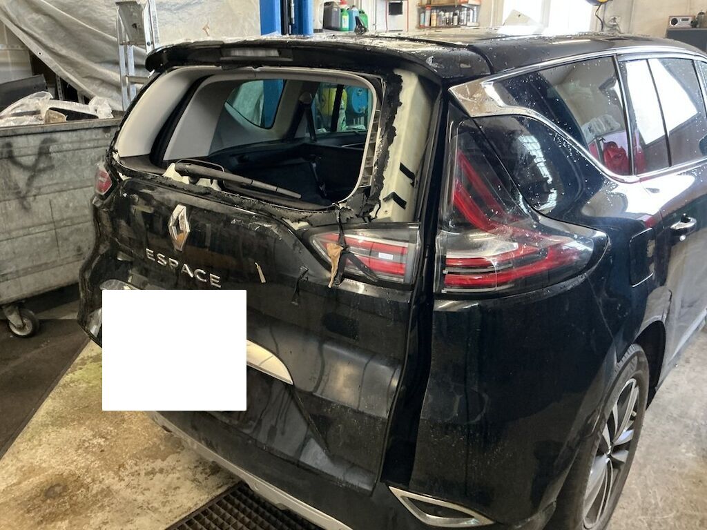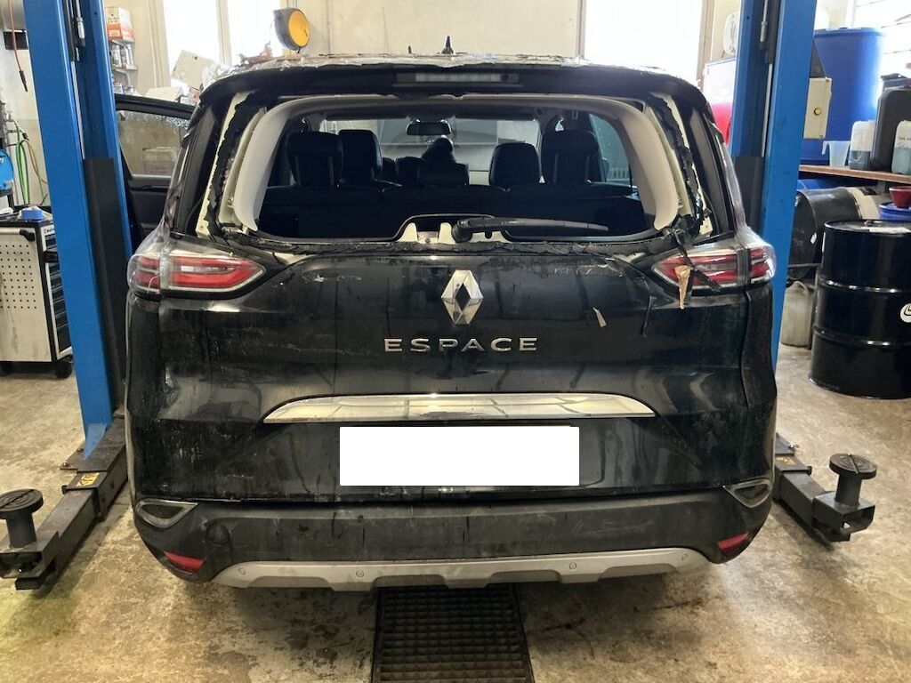Pare-chocs, supports, traverses, feu, hayon, lunette, pavillon, fond de coffre et jupe endommagés.