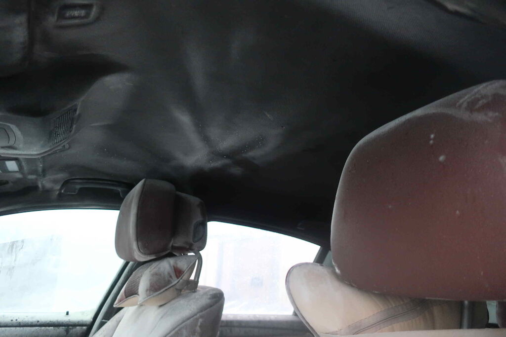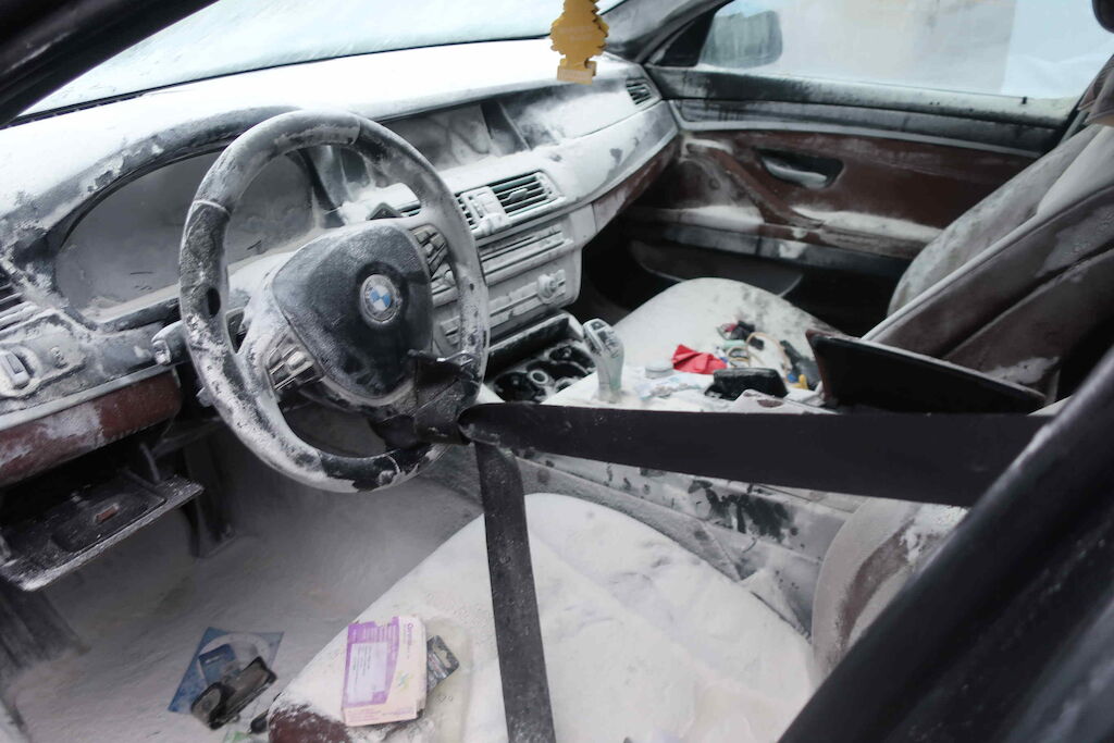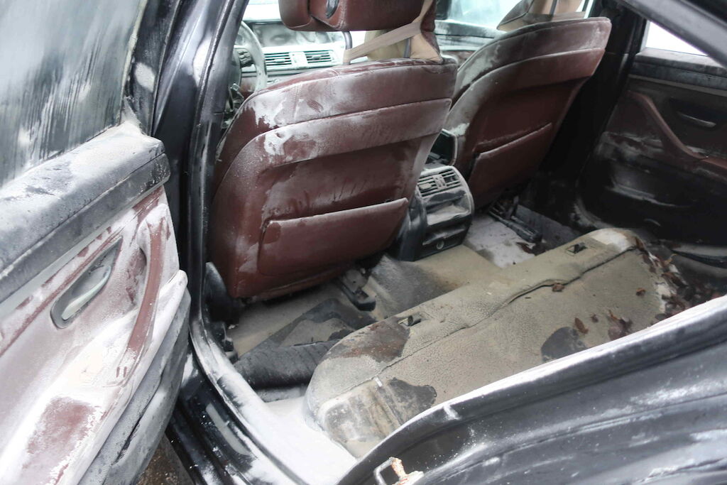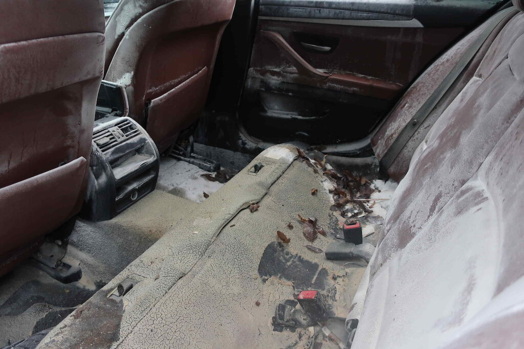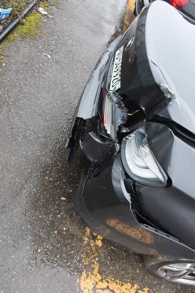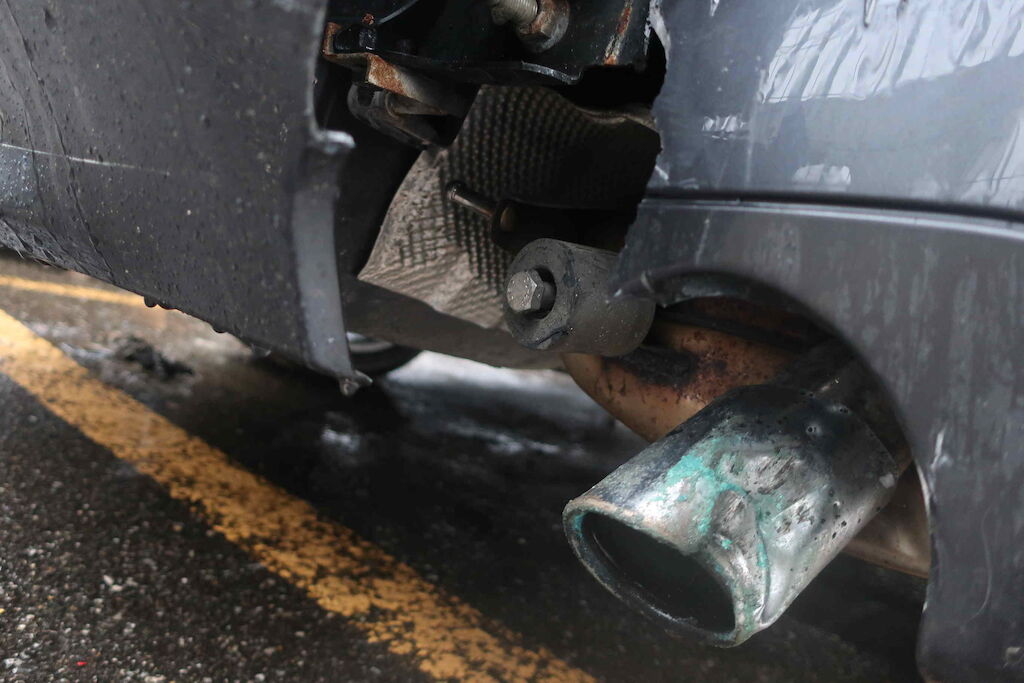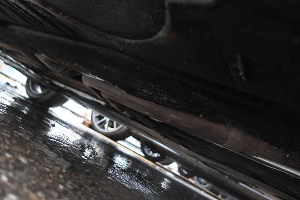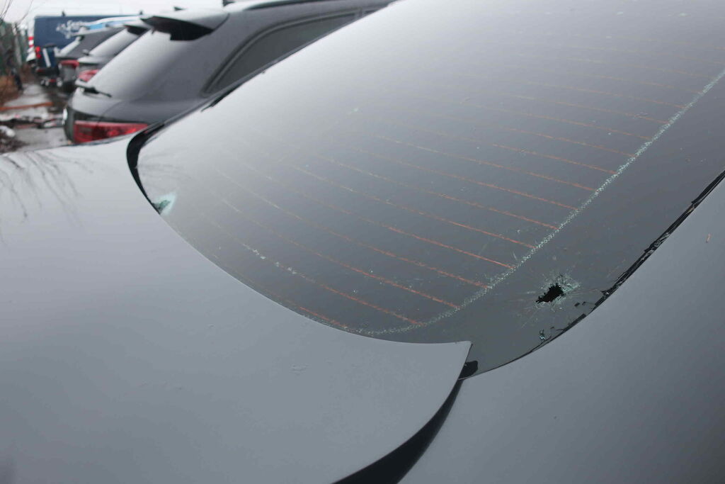 Pare chocs ar, jupe, plancher, coffre, aile ard, vitre ar, vitre lat d et g, intérieur entièrement souillé, plancher. échappement, ceintures de sécurité, serrure porte avg, appuies têtes av