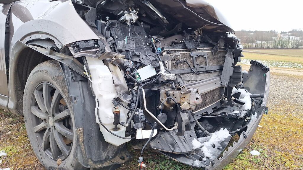 Violent dommage avant/avant droit. partie avant retroussée jusqu’au moteur. 2 airbags déclenchés