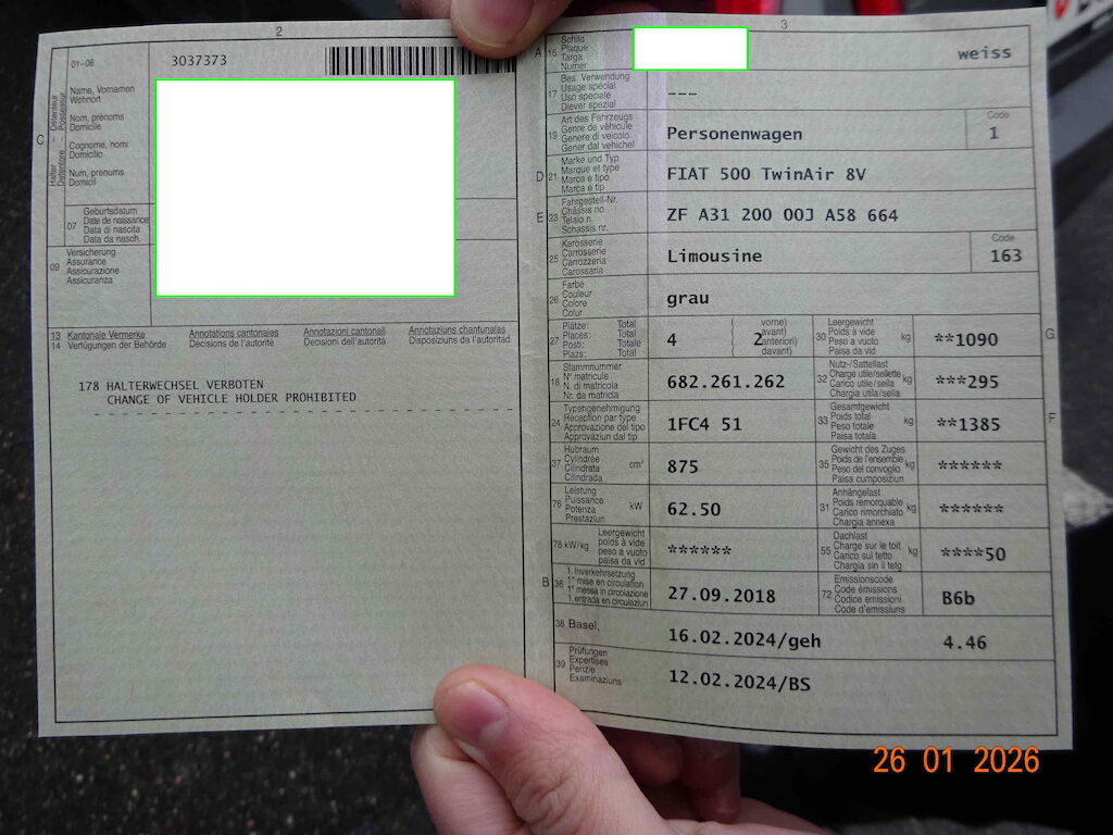 | kleiner Service mit Bremsenwechsel (Scheiben und Klötze) vorne wurde am 26.01.2026 ausgeführt Vorschaden Sitzpolster rissig |