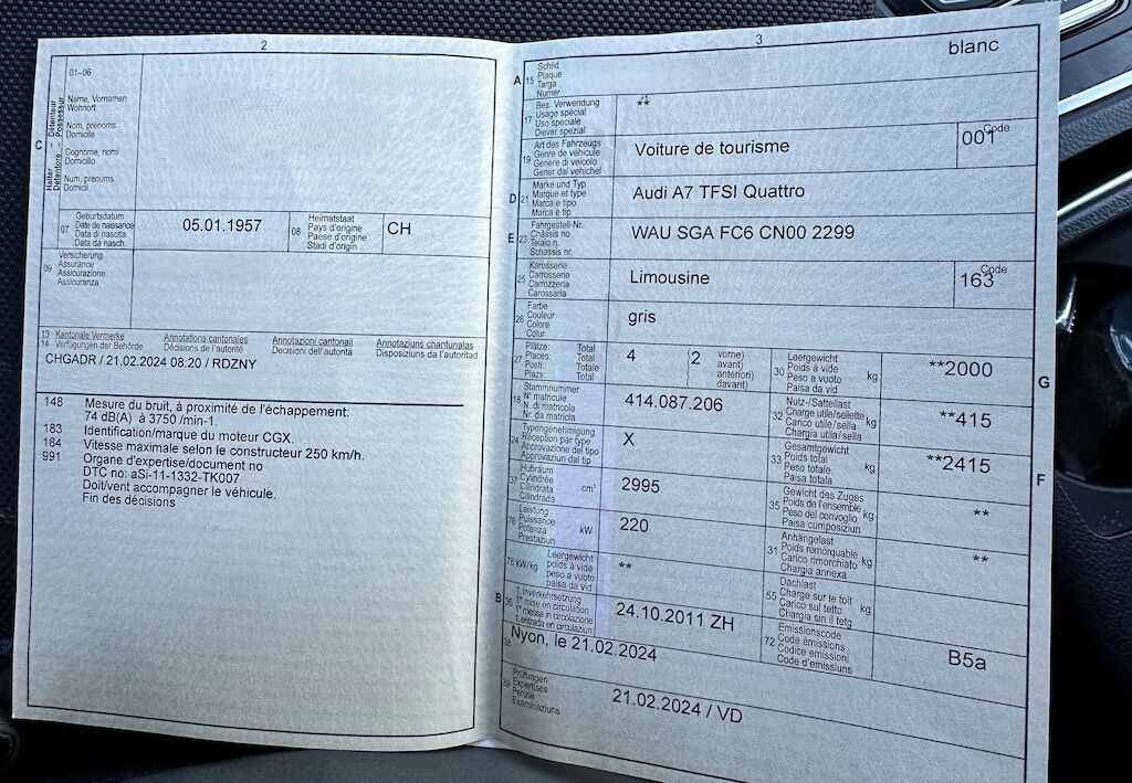 | Tipo | A7 Sportb. 3.0 TFSI quatt |