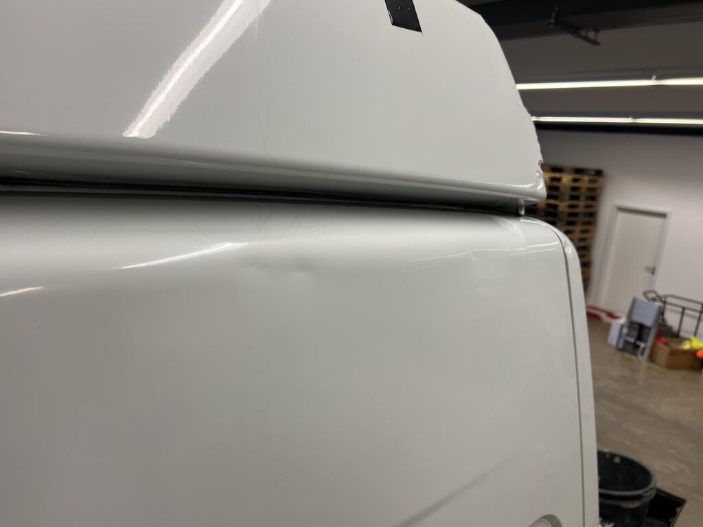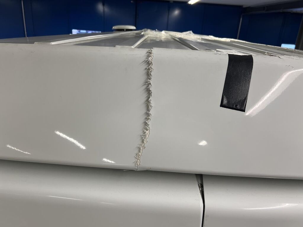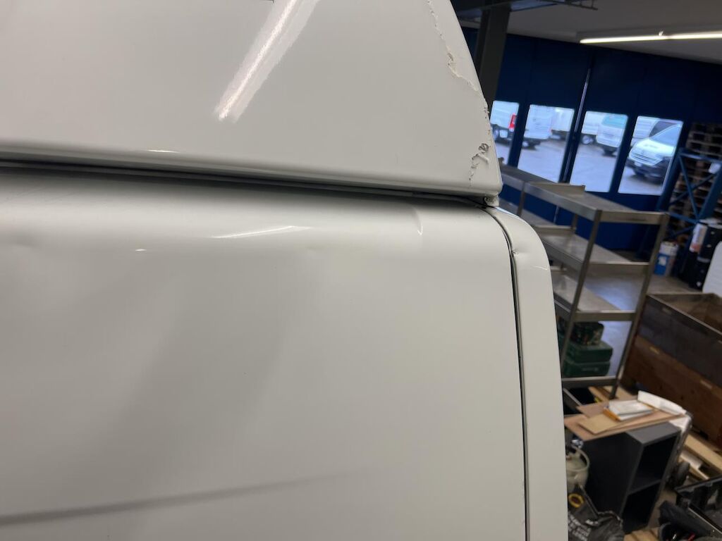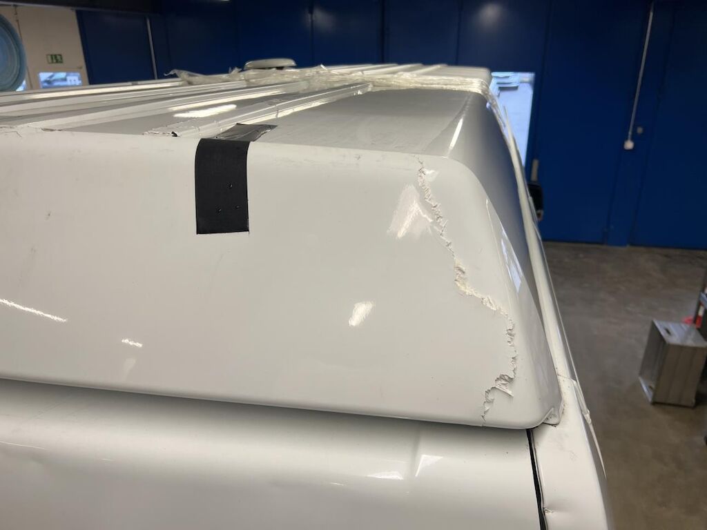 Dabei wurde das Dach hinten und in der Mitte beschädigt und die Hecktür rechts und die Ecksäule rechts