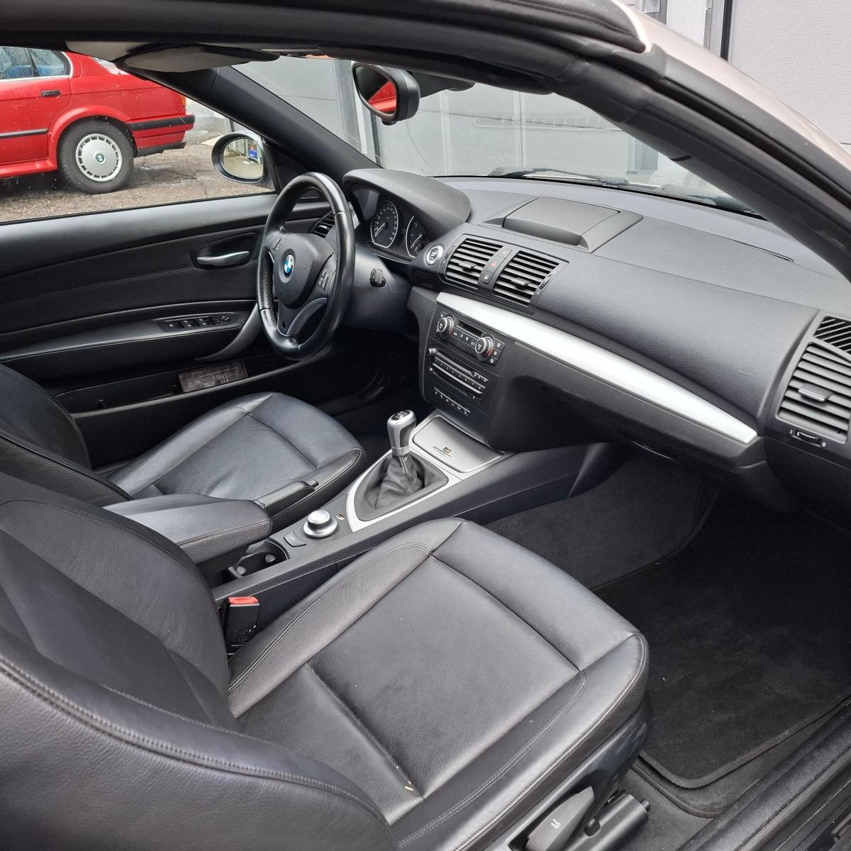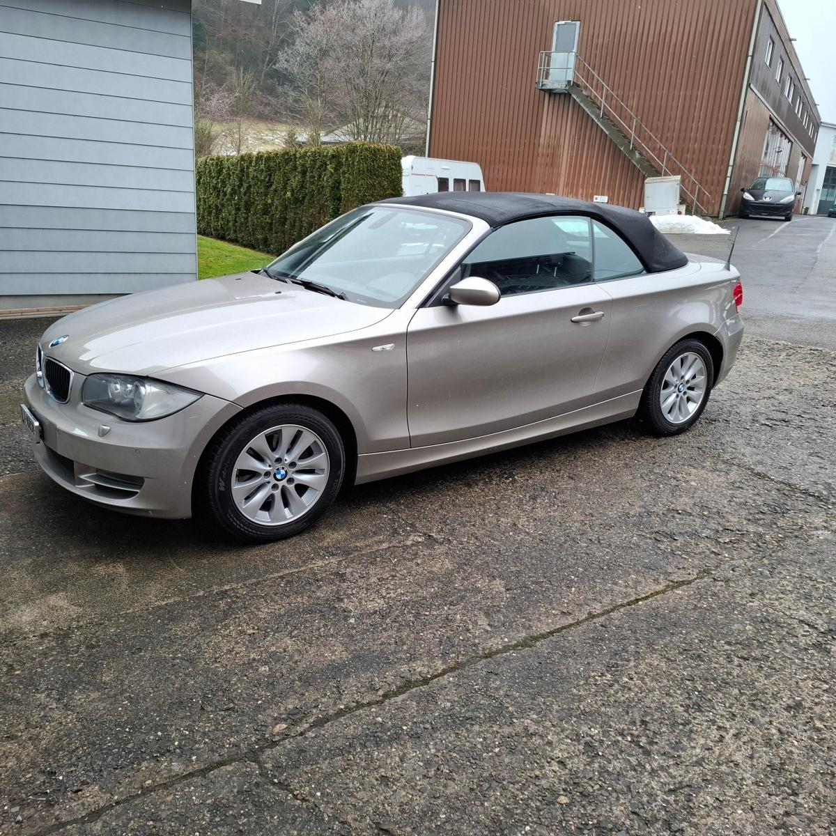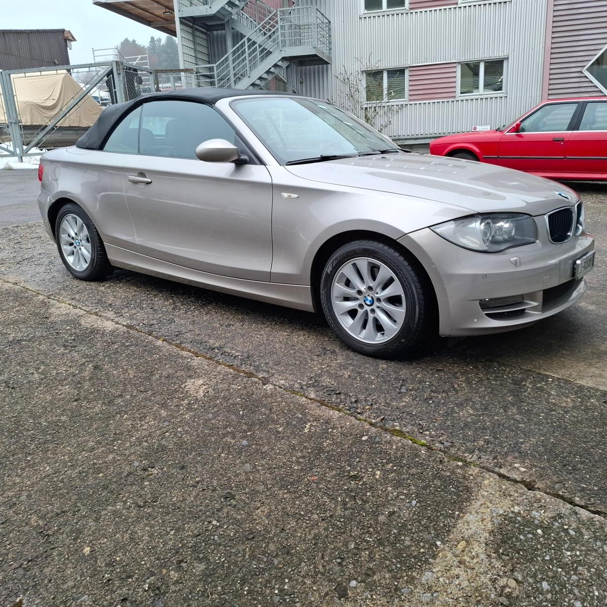 Airbag: Seitenairbag für Fahrer und Beifahrer, Stahlräder, Sitzbelegungserkennung für Beifahrersitz, Elektrisches Verdeck mit Fernbedienung, Türgriffe in Wagenfarbe, Tageskilometerzähler, Licht: Nebelschlussleuchte, Window-Kopfairbags, Dynamische Stabilitätskontrolle (DSC), Radzierblenden, Make up-Spiegel links, Vordersitze höhenverstellbar, Stossstangen und Aussenspiegel in Wagenfarbe, Anbauteile in Wagenfarbe, Zentralverriegelung mit Fernbedienung, Lenkrad: Lenkrad längs- und höhenverstellbar, Interieurleisten in Titan hell, Grün getönte Scheiben, Gurtstraffer vorne, Getriebe: 6-Gang-Getriebe, Motor Start-/Stop-Anlage, Scheibenwischer vorne mit Intervall, Heckscheibenheizung, Aux-In Anschluss, Abschliessbare Radschrauben, ISOFIX Kindersitzvorrichtung, Überrollschutzsystem, Katalysator geregelt, Aussenspiegel rechts und links elektrisch verstellbar, Start-/Stop-Knopf, Durchladeklappe, Airbag: Airbag Fahrer und Beifahrer, Wartungsintervall-Anzeige, Drehzahlmesser, 3-Punkt-Sicherheitsgurte auf allen Plätzen, Innenlicht-Abschaltverzögerung, Beleuchtetes Handschuhfach, Assist: Cornering Brake Control (CBC), Lichtwarnsummer, Antiblockiersystem (ABS), Stoff-Ausstattung, Lenkung, elektrisch unterstützt, Wegfahrsperre elektronisch, Reifen mit Notlaufeigenschaft, Elektrische Fensterheber vorne + hinten, Bremsassistent (BAS), Aktive Kopfstützen, Digital Uhr, Aussentemperaturanzeige, Halogenscheinwerfer, Nichtraucherausführung, Make up-Spiegel rechts, Drittes Bremslicht, Assist: Dynamische Traktionskontrolle (DTC), Bordcomputer, Oelstandsanzeige, Nebelscheinwerfer, Radio BMW Business CD, Bremsbelag-Verschleissanzeige, Check-Control-System, Lackierung: Uni-Lackierung, Zweiklanghorn