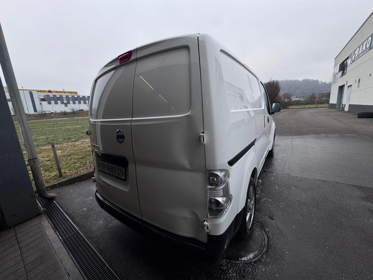 Licht: Tagfahrlicht, Armlehne für Beifahrersitz, Garantie: NISSAN Garrantie 5 Jahre / 100 000 km Herstellergarantie – auf alle elektrofahrzeugspezifischen Bauteile – (ab 1. Inv.), Getriebe: Direktantrieb, 12-Volt-Steckdose vorne, Airbag: Airbag Fahrer und Beifahrer, Elektronisches Stabilitäts-Programm (ESP), Assist: Licht- und Regensensor, Radiovorbereitung, Dachantenne und 2 Lautsprecher, Lenkrad: Multifunktionslenkrad, Elektrische Fensterheber vorne mit Impulsfunktion Fahrerseite, Verzurrösen, Stoff-Ausstattung, ABS, EBD elektronische Bremskraft- verteilung, Aussenspiegel rechts und links elektrisch verstellbar, Armlehne für Fahrersitz, Nebelschlussleuchte, Klimaautomatik, Ablagefach im Dachbereich, NissanConnect Navigationsystem mit 7” Touchscreen inkl. TMC, Radio-CD mit MP3 USB, AUX, Bluetooth, DAB+,, Verzurrösen seitlich im Laderaum, Mittelkonsole mit Ablagefach-Abdeckung, Stahlräder 15J, Akustisches Annäherungssignal intermittierend, nach vorne abstrahlend, bis 30 km/h, Licht: Nebelscheinwerfer, Beifahrersitz-Rückenlehne umklappbar, Garantie: NISSAN Garrantie 8 Jahre / 160 000 km Garantie – auf Kapazitätsverlust der Lithium-Ionen-Batterie – (ab 1. Inv.), Türen: Schiebetüre rechts, TPMS Reifendrucküberwachungssystem, Assist: Tempomat mit Geschwindigkeitsbegrenzer, Assist: Berganfahrassistent, CHAdeMo Schnelladeanschluss vorn, Vehicle2Grid Ready, Gleichstrom (bis 50kW), Lackierung: Uni-Lackierung, Batteriekühler, Hecktüren 60/40 geteilt, 180° Öffnungswinkel, verblecht, Lenkrad höhenverstellbar, Bordcomputer mit Energieverbrauchanzeige und Fahrstatistik, Vollwertiges Ersatzrad, unter dem Fahr- zeug montiert, Pollenfilter (Staubfilter), EVSE-Kabel Mode2-Sicherheitssystem via Haushaltsanschluss (bis 1.8kW), 3-Punkt-Sicherheitsgurte auf allen Plätzen, Drittes Bremslicht, Licht: Drittes Bremslicht, Laderaumbodenschutz, LED Heckleuchten, Assist: Rückfahrkamera, Laderaumtrennwand ohne Fenster, Ladefunktionsanzeige auf dem Armaturenbrett, Ladeanschluss für Wechselstrom bis 6.6kW, Ablagen in den Türen, Dual-Display für Geschwindigkeitsanzeige Batteriekapazitäts- und Restreichweiten- anzeige, Energieverbrauchsanzeige, Schublade unter Fahrersitz, Cupholder vorne, Servolenkung, Licht: Nebelschlussleuchte, Scheibenwischer vorne mit Intervall, Seitenairbags, INTELLIGENT KEY mit Steuerungs- möglichkeit der Klimaanlage, keyless entry und Starten des Motors