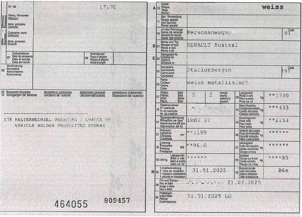 Achtung: Bei dieser Auktion handelt es sich vorerst um eine Restwertermittlung, bei der ein definitiver Verkauf bzw. die Abgabe des Objektes an den Höchstbietenden von einem allfälligen Übernahmeangebot des Fahrzeughalters abhängt.