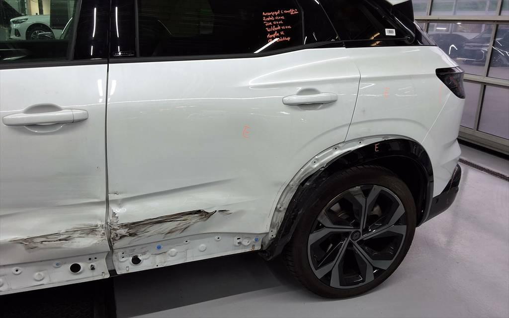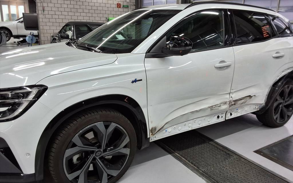 Aussenspiegel links, B-Säule, Gurtstraffer ausgelöst, Interieur verschmutzt, Kotflügel links, Schweller links, Seite links, Seitenwand links, Türe hinten links, Türe vorne links