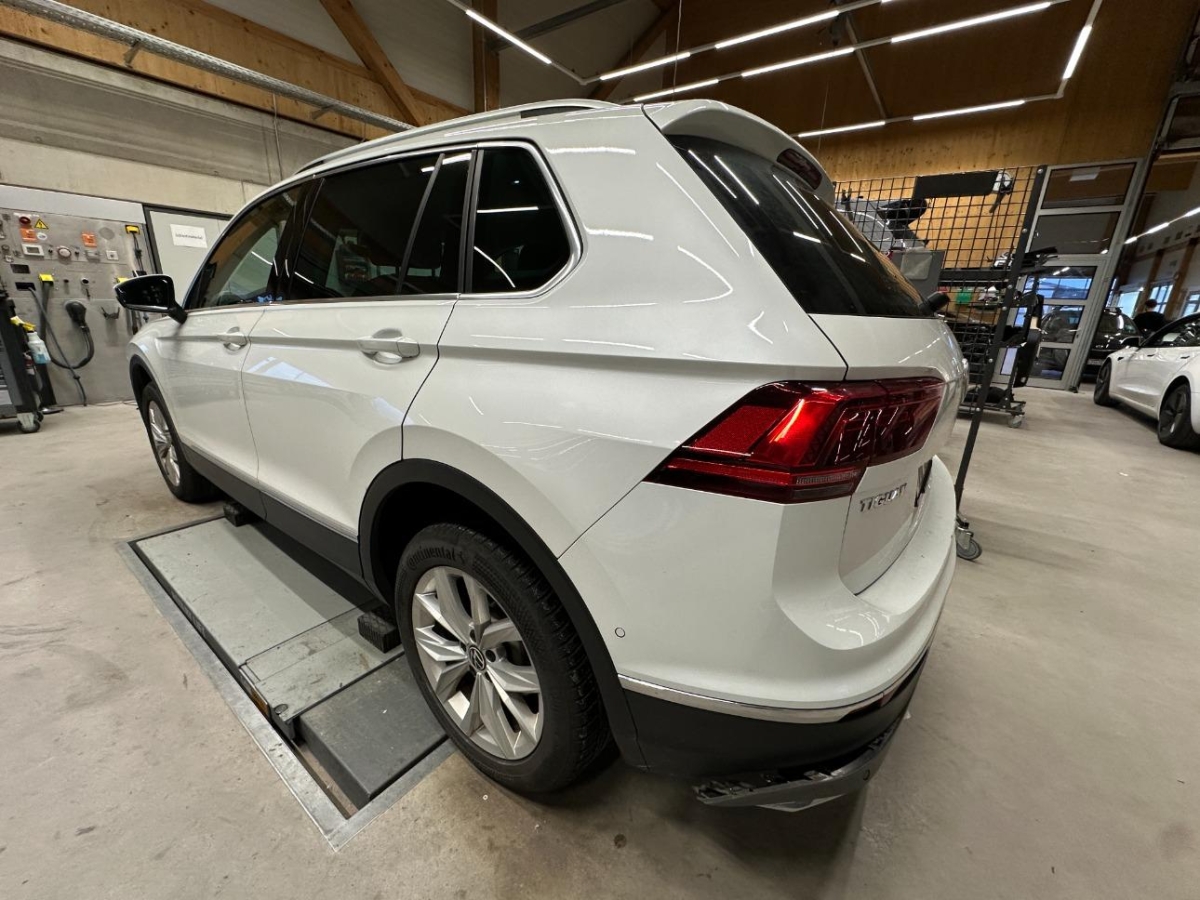 Paket: Chrompaket (Stossfänger in Wagenfarbe, Stossfängerunterteile schwarz und Mittelteile in Granitgrau Metallic, Chrom-Applikationen am Spiegeleinstell- und am Fensterheberschalter, Türinnenbetätigung und am Türzuziehgriff, Dachreling eloxiert), Paket: Winterpaket in Verbindung mit Lederausstattung “Vienna” (Sitze: Vordersitze heizbar, Warnleuchten für Waschwasserstand und für Lampenausfall von Scheinwerfer, Rück- und Bremsleuchte, Scheibenwaschdüsen vorn automatisch beheizt), Paket: Spiegelpaket (Aussenspiegel elektrisch anklappbar mit Umfeldbeleuchtung und Beifahreraussenspiegelabsenkung), Paket: Winterpaket, Sitze: Proaktives Insassenschutzsystem “Pre Crash”, Media: Mobiltelefonvorbereitung “Comfort” inkl. Wireless Charging – Freisprecheinrichtung – Induktive Aussenantennenanbindung – Induktive Handy- Ladefunktion Wireless Charging, Fahrwerk: Adaptive Fahrwerksregelung DCC inkl. Fahrprofilauswahl – lässt dem Fahrer per Knopfdruck die Wahl zwischen einer komfortablen, sportlichen oder normalen Fahrwerksabstimmung – reagiert permanent auf unterschiedliche Fahrsituationen und berücksichtigt Brems-, Lenk- und Beschleunigungsvorgänge – Fahrprofilauswahl für Normal-, Sport-, Eco-, Individual- und Comfortmodus, Dynamiklenkung (Progressivlenkung), Textilfussmatten vorn und hinten, Media: Navigationssystem “Discover Pro” inkl. App-Connect und VW Media Control inkl. Car-Net