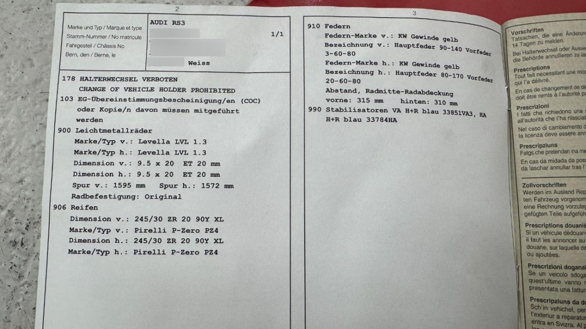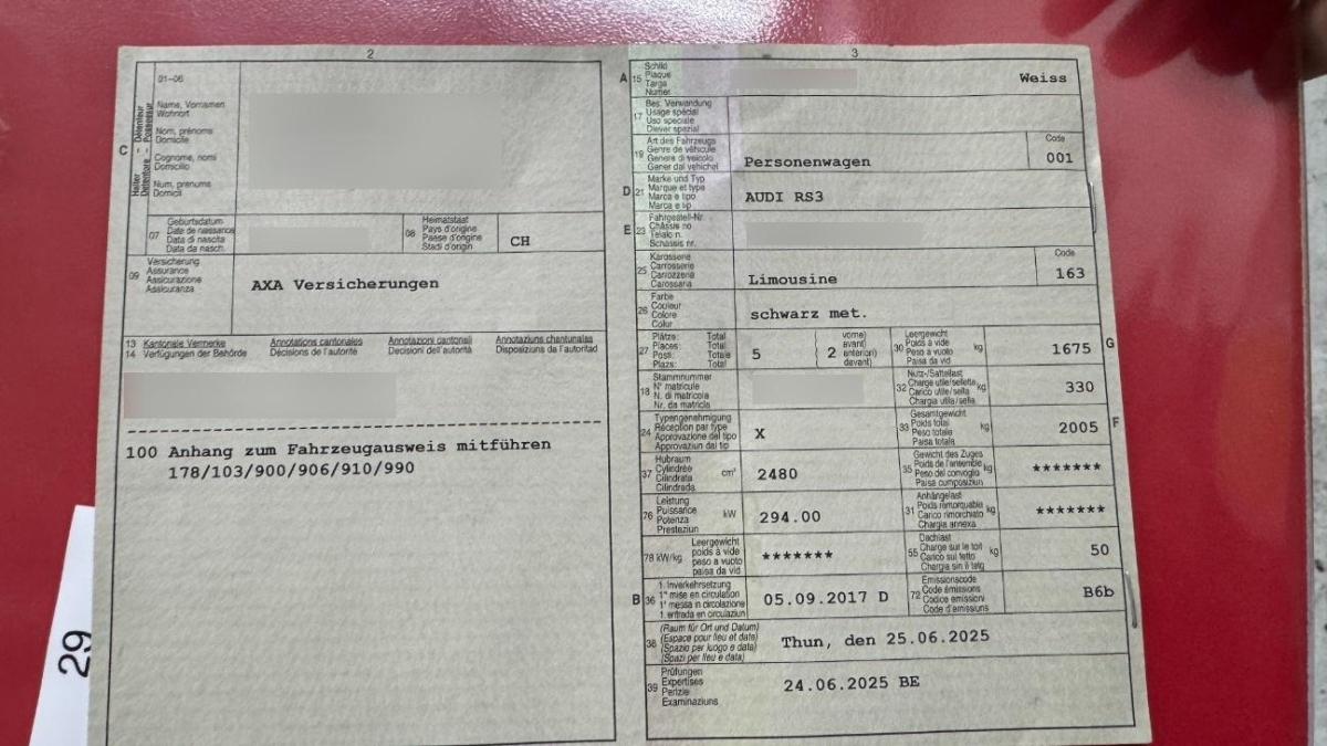 Fahrzeugausweis Vorhanden