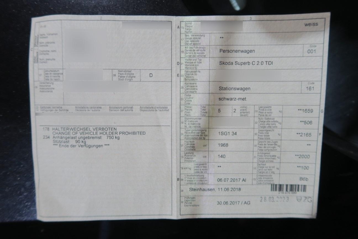 | Fahrzeugausweis | Vorhanden |