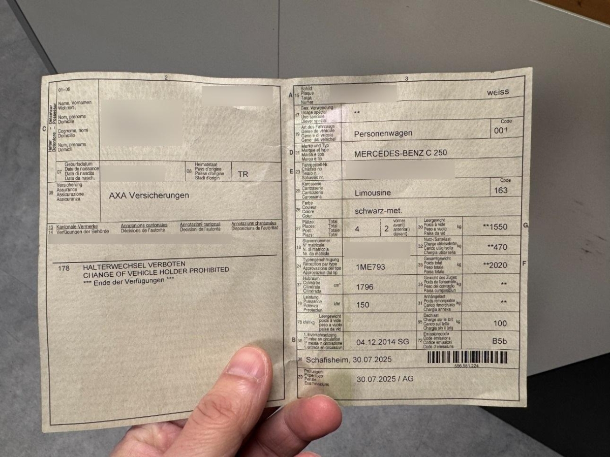| Fahrzeugausweis | Vorhanden |