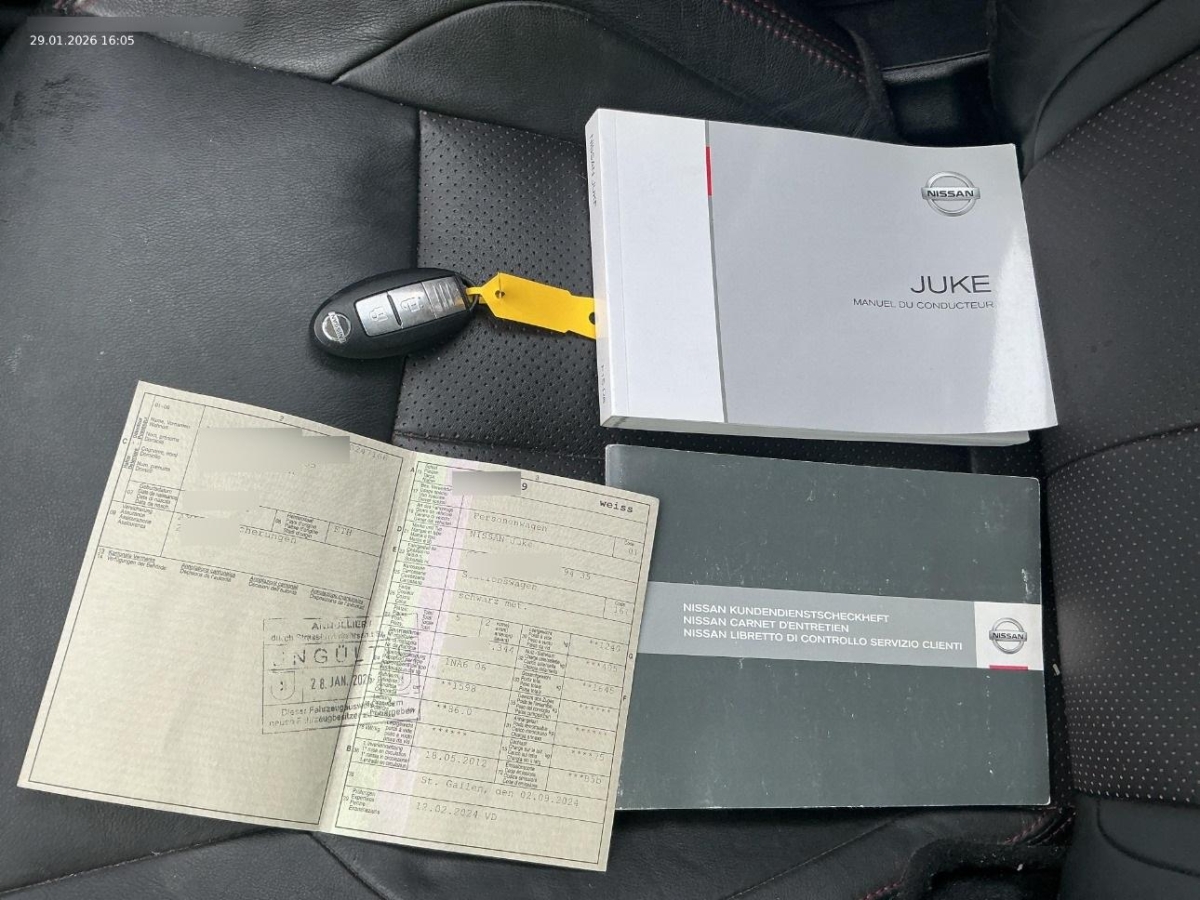 Aussenspiegel rechts und links beheizt, elektrisch verstell- / und einklappbar, Cupholder vorne, Elektronisches Stabilitäts-Programm (ESP), Window-Kopfairbags, Drittes Bremslicht, Friendly Lighting, Scheibenwischer vorne mit Intervall, ABS, EBD elektronische Bremskraftverteilung, Gurtstraffer vorne, Kartentaschen an den Rückenlehnen, Sitze: Fahrersitz höhenverstellbar, Gurtwarneinrichtung für Fahrer- und Beifahrersitz, Media: Bluetooth-Schnittstelle für Mobiltelefon, 5-Gang-Getriebe, Seitenairbags, Katalysator geregelt, Sitzbezüge Stoff Premium, Lenkrad und Schalthebelgriff in Leder, Heckklappe mit Scheibenwischer, Heckscheibenheizung, Servolenkung geschwindigkeitsabhängig, Airbag: Airbag Beifahrer deaktivierbar, 3-Punkt-Sicherheitsgurte auf allen Plätzen, Türinnengriffe silberfarben, Nebelscheinwerfer, Leseleuchten vorne, Assist: Regensensor für Scheibenwischer vorne, Sicherheitslenksäule, Bremsassistent (BAS), Kopfstützen vorne höhenverstellbar, Licht: Fahrlichtautomatik, Start-/Stop-Knopf, Laderaumabdeckung, Nebelschlussleuchte, Media: AUX-Anschluss, Assist: Tempomat mit Geschwindigkeitsbegrenzer, Auspuffblende, verchromt, Mittelkonsole und Designelemente in Metallic-Lackierung wahlweise Grau oder Rot, Nissan Dynamic Control System, Abgedunkelte Seiten- und Heckscheibe, Rücksitzlehne geteilt abklappbar, Pollenfilter (Staubfilter), Ablagen in den Türen, Leichtmetallräder Sport 17J, Kindersicherung im Fahrgastraum, Kofferraumbeleuchtung, Airbag: Airbag Fahrer und Beifahrer, Brillenablage, USB-Anschluss, Lichtwarnsummer, Handschuhfach, Gurtstraffer mit Gurtkraftbegrenzer, Lenkrad höhenverstellbar, Stossstangen, Aussenspiegel und Türgriff in Wagenfarbe, ISOFIX Kindersitzvorrichtung, 12-Volt-Steckdose vorne, Elektrische Fensterheber vorne + hinten, Höhenverstellbare Gurten vorne, Räder: Reifenreparatur-Set (Tire Fit), Bordcomputer, Aussentemperaturanzeige, INTELLIGENT KEY, Zentralverriegelung mit Fernbedienung, Innenspiegel abblendbar, Radiovorbereitung, Antenne, Entstörung und 6 LS, Klimatisierungsautomatik, 3 Kopfstützen hinten, Lackierung: Uni-Lackierung, NISSAN Connect: 2-DIN Navigationseinheit m. 5” Touchscreen, Bluetooth, Radio-CD mit MP3, USB und iPod-Anschl., Wegfahrsperre elektronisch