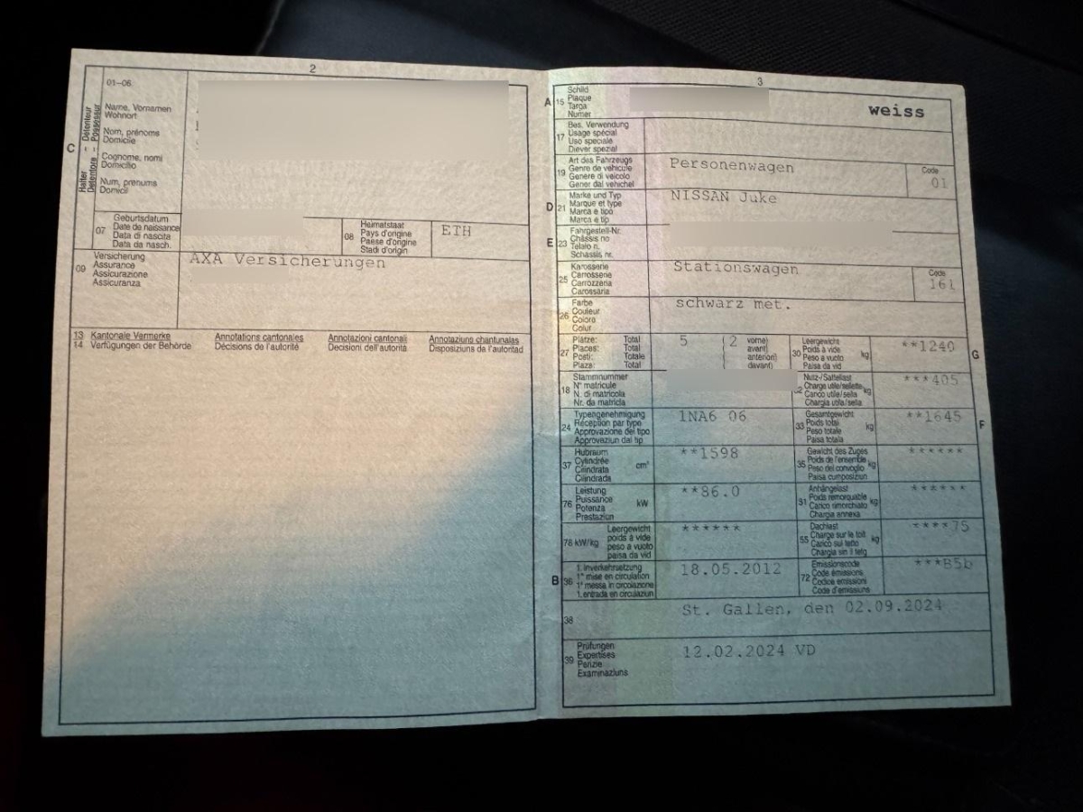 | Fahrzeugausweis | Vorhanden |