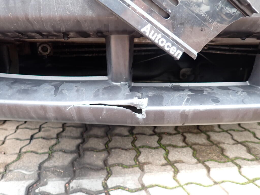 Traverse avant et tous les radiateurs enfoncés et refoulés. Pare-chocs avant, spoiler, absorbeur et grille de calandre enfoncés et cassés. Risque sur la calandre. Le véhicule est toujours utilisé par le propriétaire. Partie avant endommagée. Tôle frontale enfoncée. Risque sur le moteur. Tous les radiateurs sont endommagés. Divers éléments de carrosserie sont légèrement endommagés. Risques sur les phares, les feux antibrouillard.