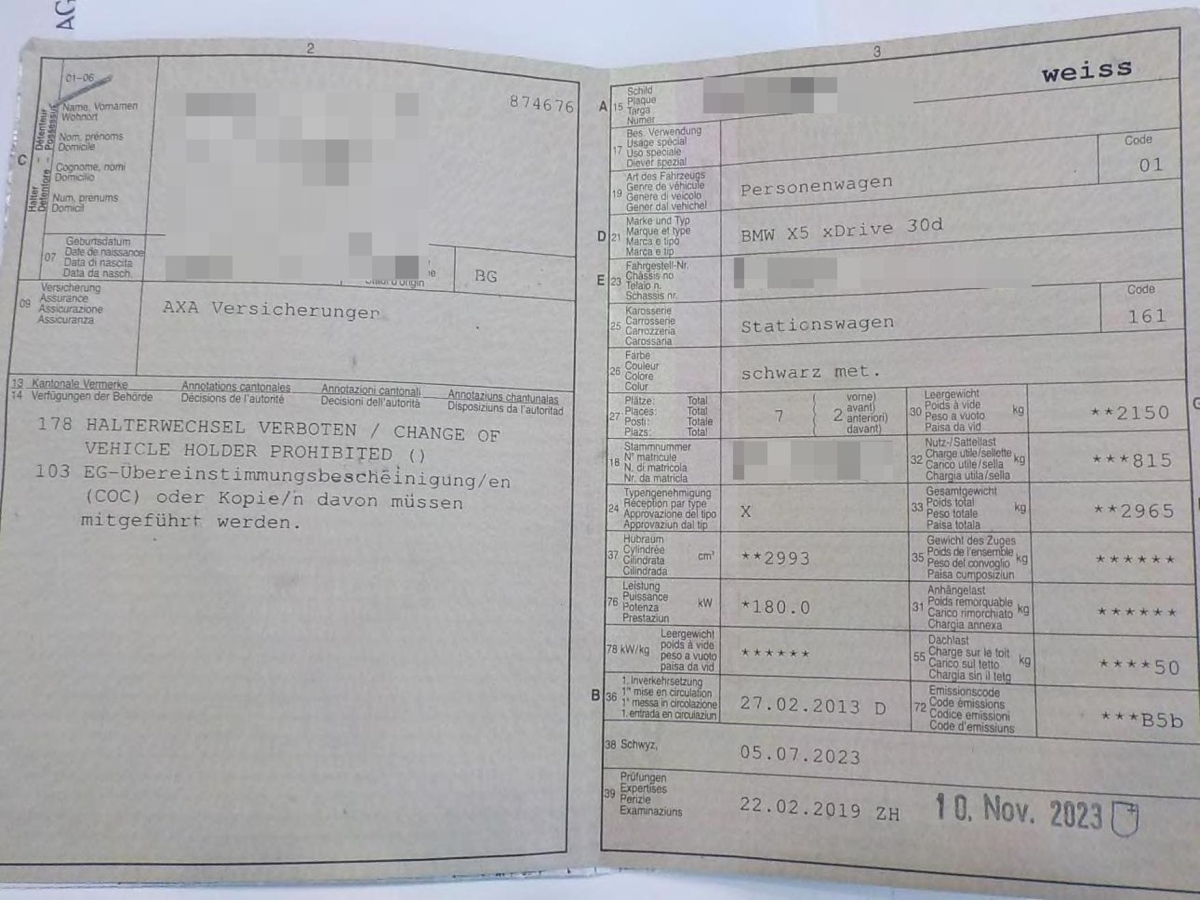 | Fahrzeugausweis | Vorhanden |