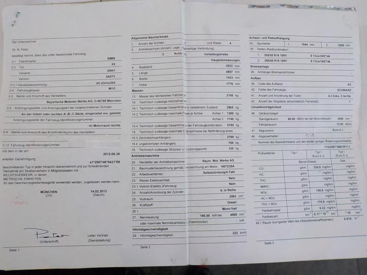 Assist: Cornering Brake Control (CBC), Park Distance Control vorne und hinten, Aussenspiegel rechts und links beheizbar und elektrisch verstellbar, Höhenverstellbare Gurten vorne, Tageskilometerzähler, Anbauteile in Wagenfarbe, Befestigungsösen im Laderaum, Innen- und Aussenspiegel automatisch abblendend, Lichtwarnsummer, Hill Descent Control (HDC), Gepäckraumboden abschliessbar, Getriebe: 8-Stufen-Automat Steptronic, Heckscheiben-Wisch-/Waschanlage, Bremsenergie-Rückgewinnung, Aux-In Anschluss, Steckdose im Kofferraum, ISOFIX Kindersitzvorrichtung, Dynamische Stabilitätskontrolle (DSC), Frontscheibe Verbundglas, Reifendruckverlust-Warnsystem, Armlehne vorne mit Ablagefach, Klimatisierungsautomatik, Stossstangen und Aussenspiegel in Wagenfarbe, Regensensor für Scheibenwischer vorne, Lenkrad: Lenkrad längs- und höhenverstellbar, Drittes Bremslicht, Lenkrad: Multifunktionslenkrad, Leichtmetallfelgen im Sternspeiche 209 18J mit Pneu, Vordersitze mit elektrischer Höhen-, Lehnen-, und Neigungseinstellung, Airbag: Airbag Fahrer und Beifahrer, Verbandskasten, Wegfahrsperre elektronisch, Sitzbelegungserkennung für Beifahrersitz, Automatische Stabilitäts-Control (ASC), Mittelarmlehne vorne, Veloursfussmatten vorne und hinten, 3 Kopfstützen hinten, Stoff-Ausstattung, Antiblockiersystem (ABS), Dynamische Bremsleuchten, Wartungsintervall-Anzeige, Bremsbelag-Verschleissanzeige, Partikelfilter und Oxydationskatalysator, Assist: Tempomat mit Bremsfunktion, Servotronic, Allradantrieb permanent, Stereolautsprechersystem mit 6 LS, Licht: Nebelschlussleuchte, Grün getönte Scheiben, Elektrische Fensterheber vorne + hinten, Lackierung: Uni-Lackierung, 2 Steckdosen in der Mittelkonsole (vorne und hinten), Laderaumabdeckung, Bordcomputer, Dekor: Interieurleisten in Satinsilber matt, Reifen mit Notlaufeigenschaft, Airbag: Seitenairbag für Fahrer und Beifahrer, Assist: Crash-Sensor, Mittelarmlehne hinten, Radio BMW Professional, 3 Speichen-Lederlenkrad, Rücksitzlehne geteilt abklappbar, Cupholder vorne und hinten, Aussentemperaturanzeige, Abschliessbare Radschrauben, Assist: Anfahrassistent, Scheibenwischer vorne mit Intervall, Elektronische Parkbremse, Gurtstraffer vorne, Tagfahrlicht, Aufklappbare Heckscheibe, Nichtraucherausführung, Zentralverriegelung mit Fernbedienung, Bremsassistent (BAS), Geteilte Heckklappe, Sicherheitstrennnetz oder /-gitter im Gepäckraum, Start-/Stop-Knopf, Aktive Kopfstützen, Airbag: Airbag Beifahrer deaktivierbar, Vordersitze mechanisch längsverstellbar, Info-Display, Window-Kopfairbags, Nebelscheinwerfer