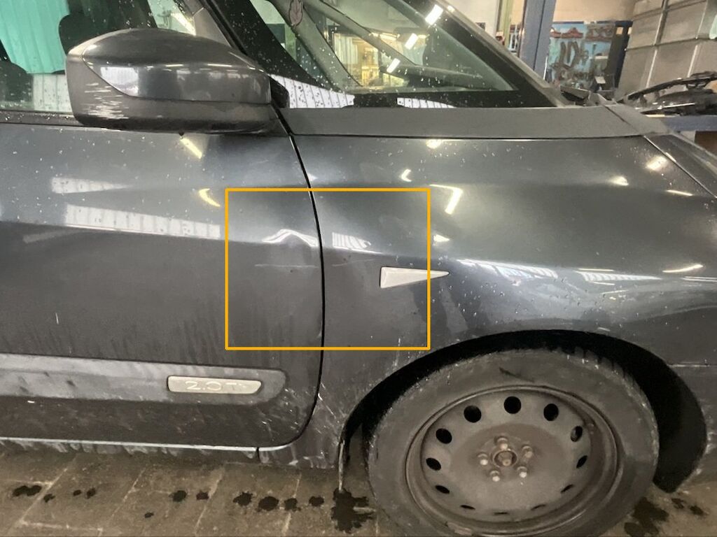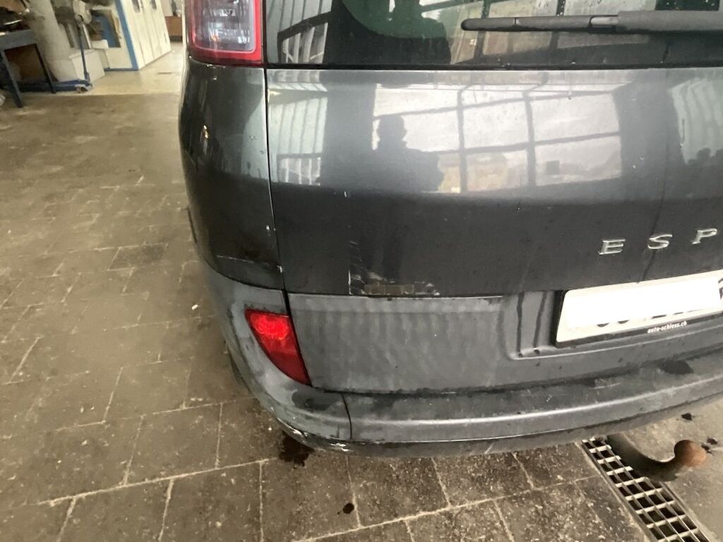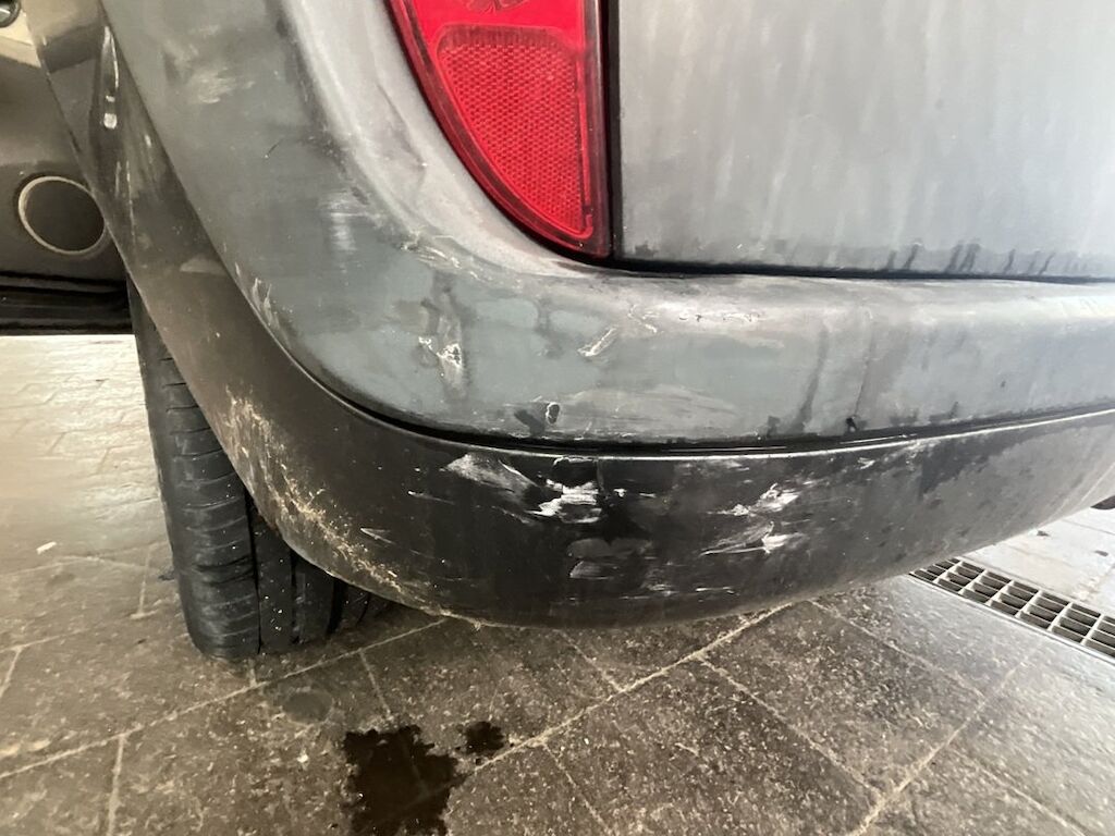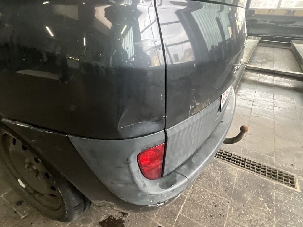 Pare-chocs arrière, hayon et aile arrière gauche endommagés. Dommage de grêle.