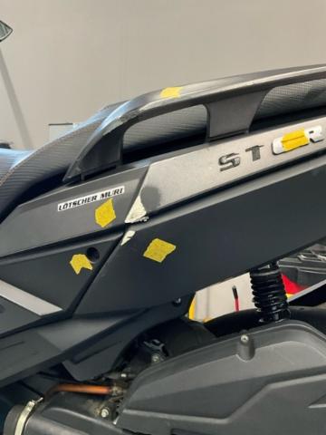 Beschädigungen Links Linke Seite beschädigt. Ist auf die linke Seite gefallen. Verschalung unten links gebrochen. Verschalung hinten links verkratzt. Front Sonstige Schäden Weitere Beschädigungen |