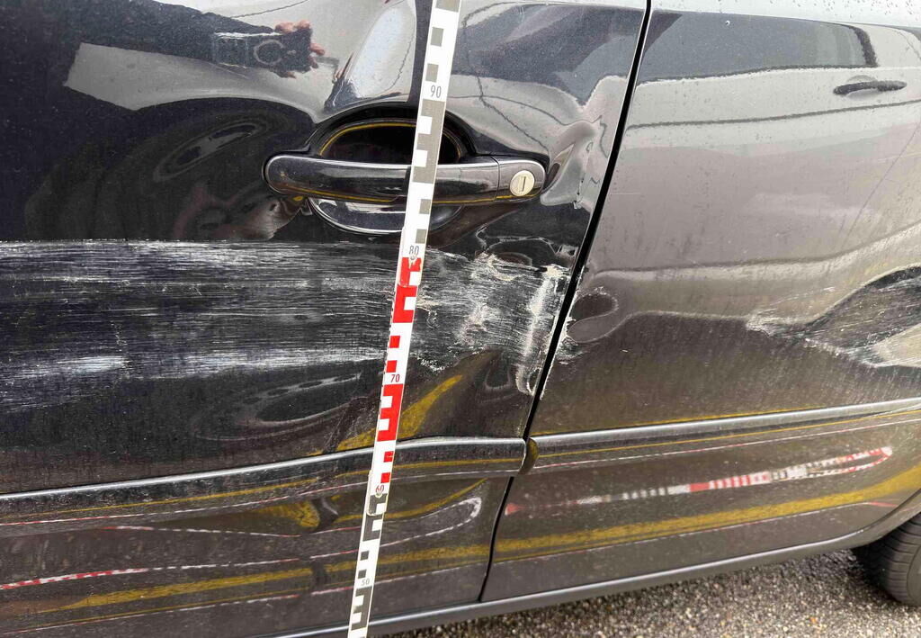– Türe vorne, hinten, Seitenwand deformiert, verkratzt