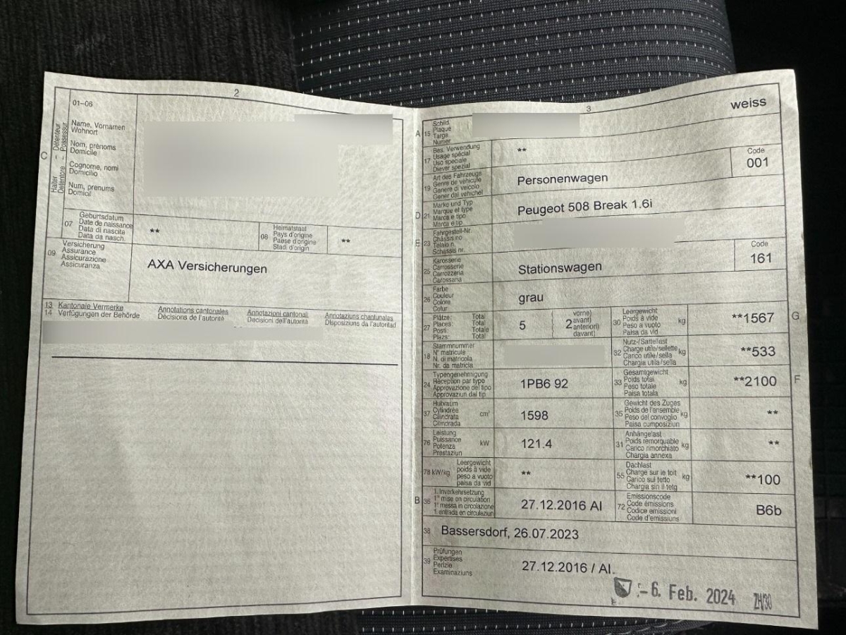 | Fahrzeugausweis | Vorhanden |