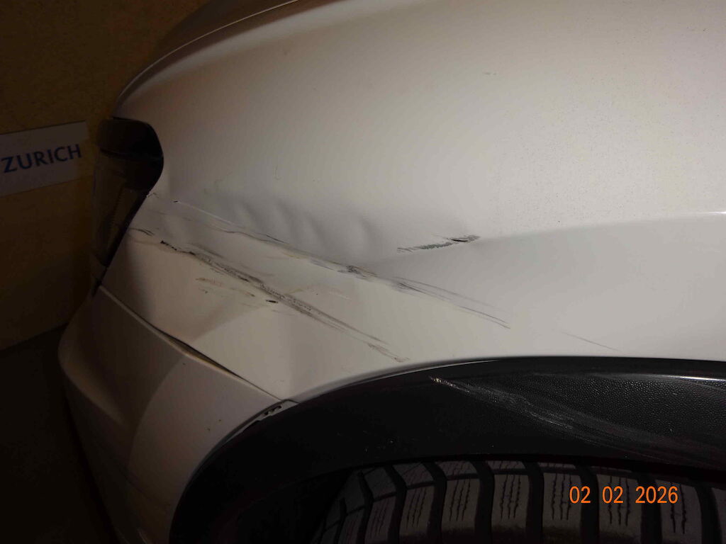 Kotflügel vorne links deformiert, Türe VL deformiert, Stossstange vorne gerissen, Scheinwerfer links zerkratzt, Felge vorne links angefahren, Aussenspiegel rechts beschädigt.